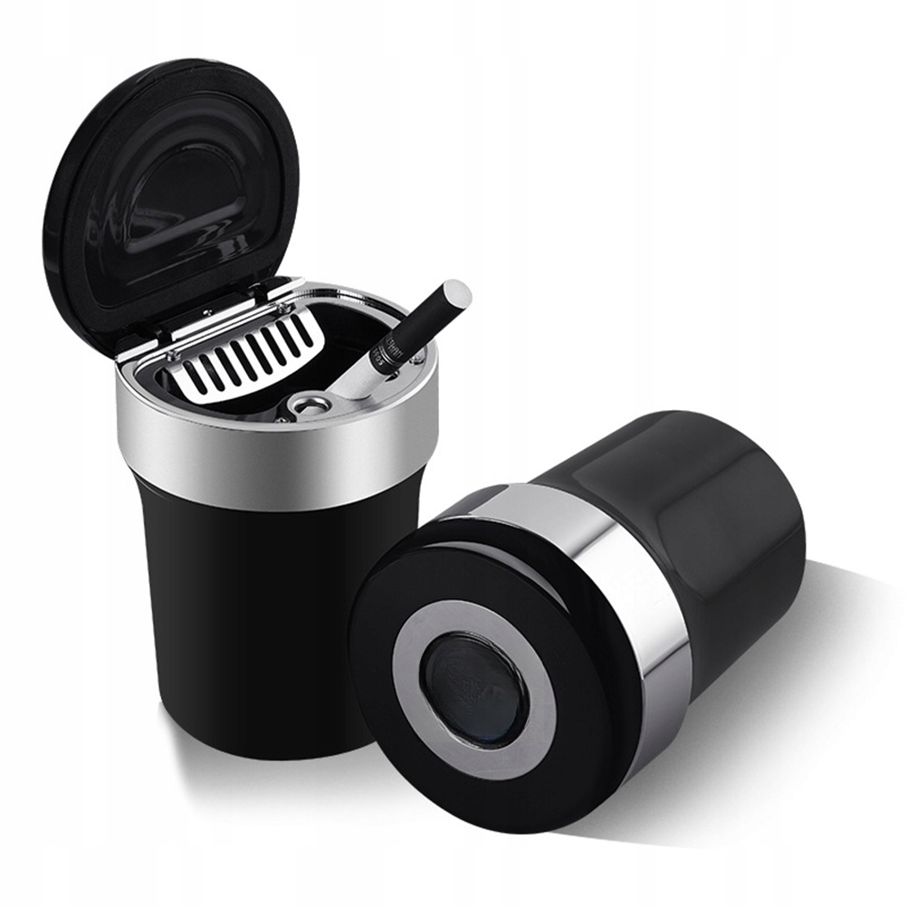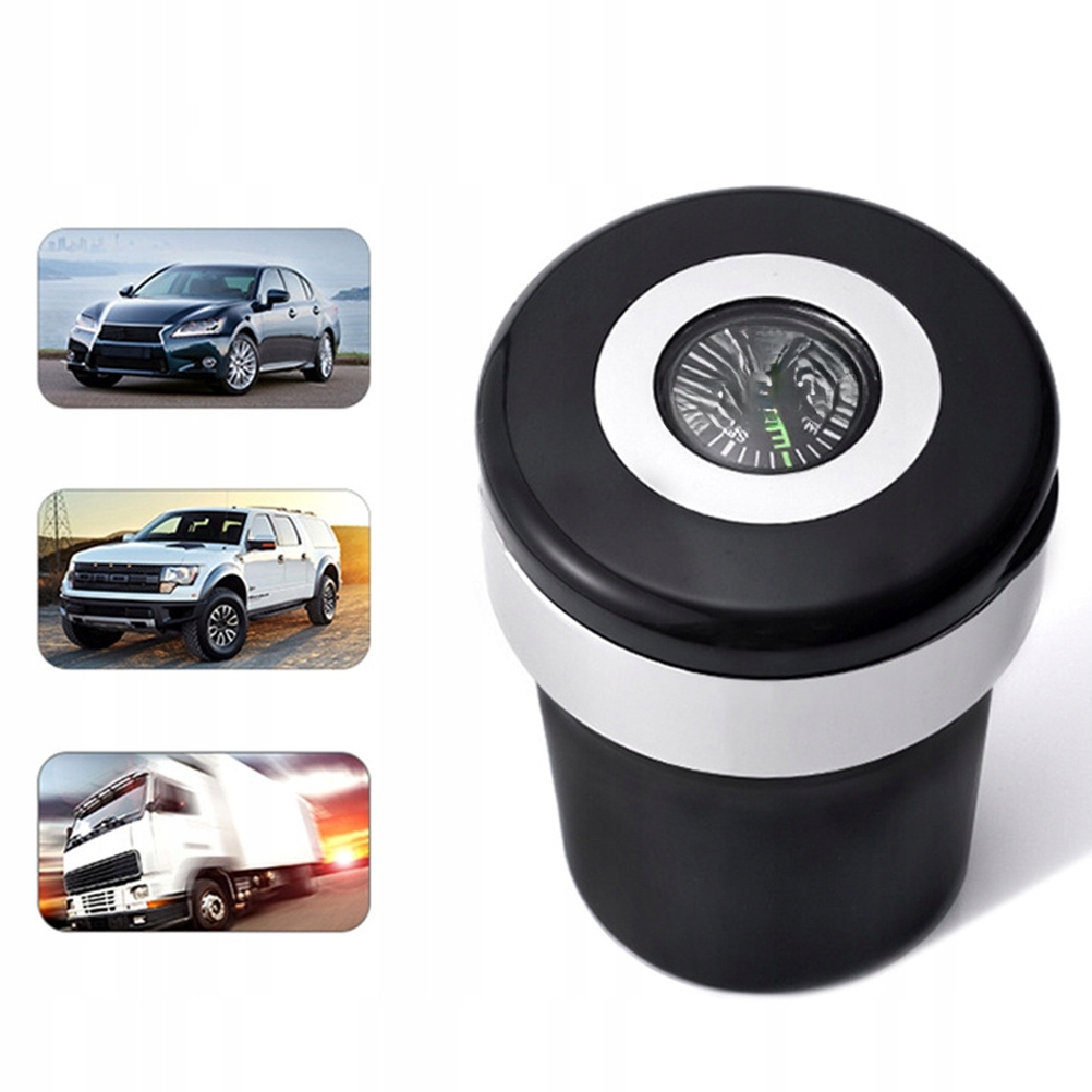 ✅1 портативная светодиодная пепельница Автомобильный держатель для сигарет Бездымный автомобильный держатель для пепельницы с компасом и светодиодом (черный и серебристый)