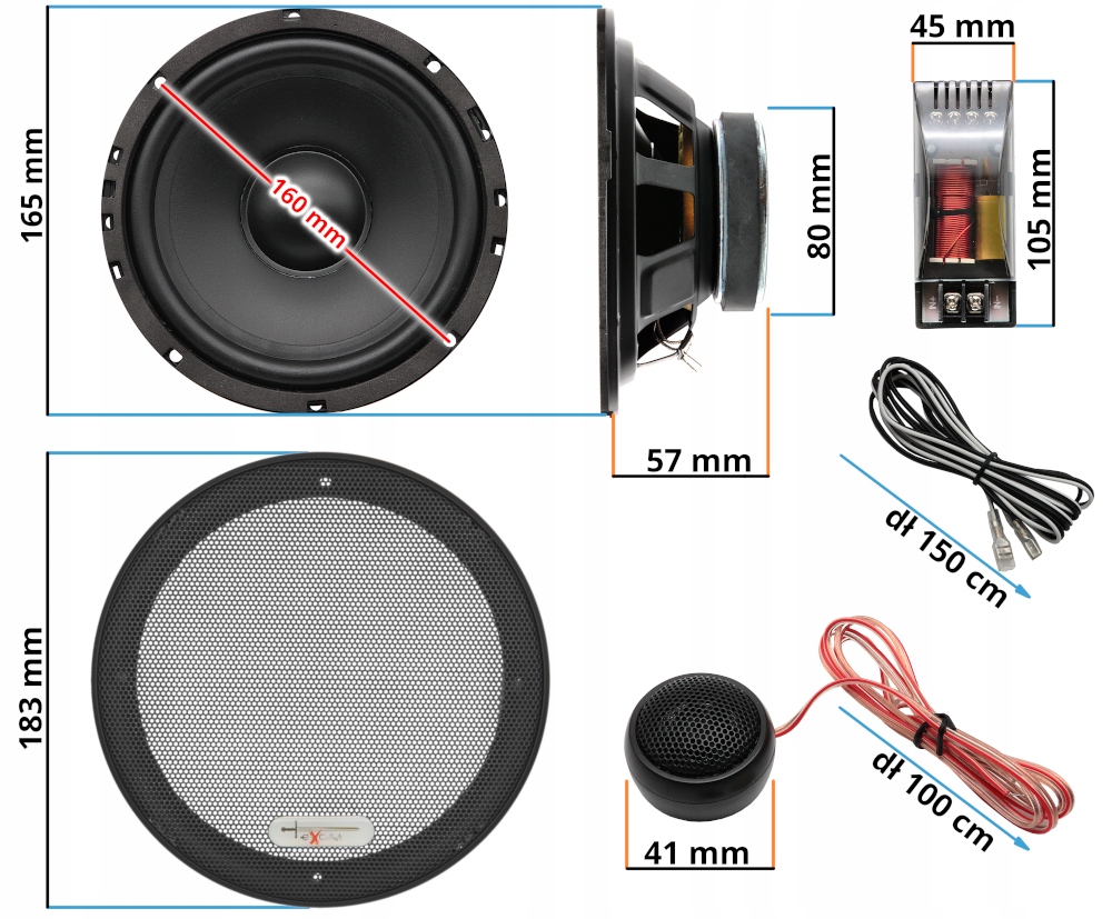 - НЧ-динамики диаметром 165 мм.