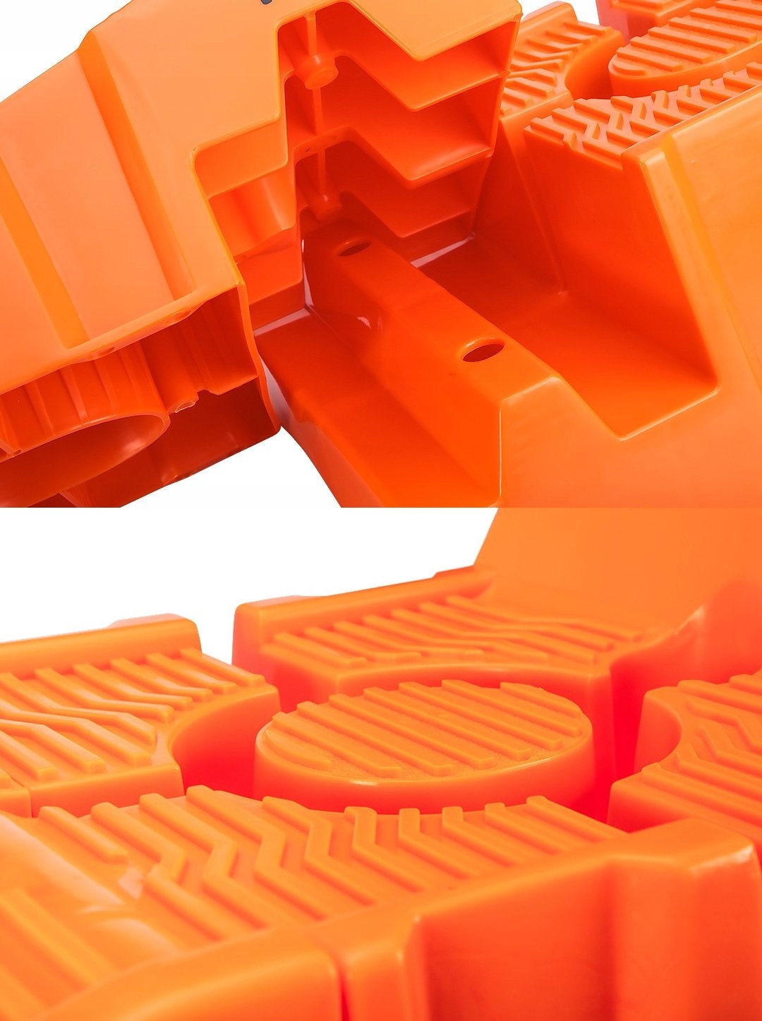 ➡️ Пазы в материале и высокий порог безопасности – рампы оснащены высоким порогом, защищающим автомобиль от скатывания вперед. Кроме того, весь пандус покрыт специальной конструкцией, увеличивающей сцепление