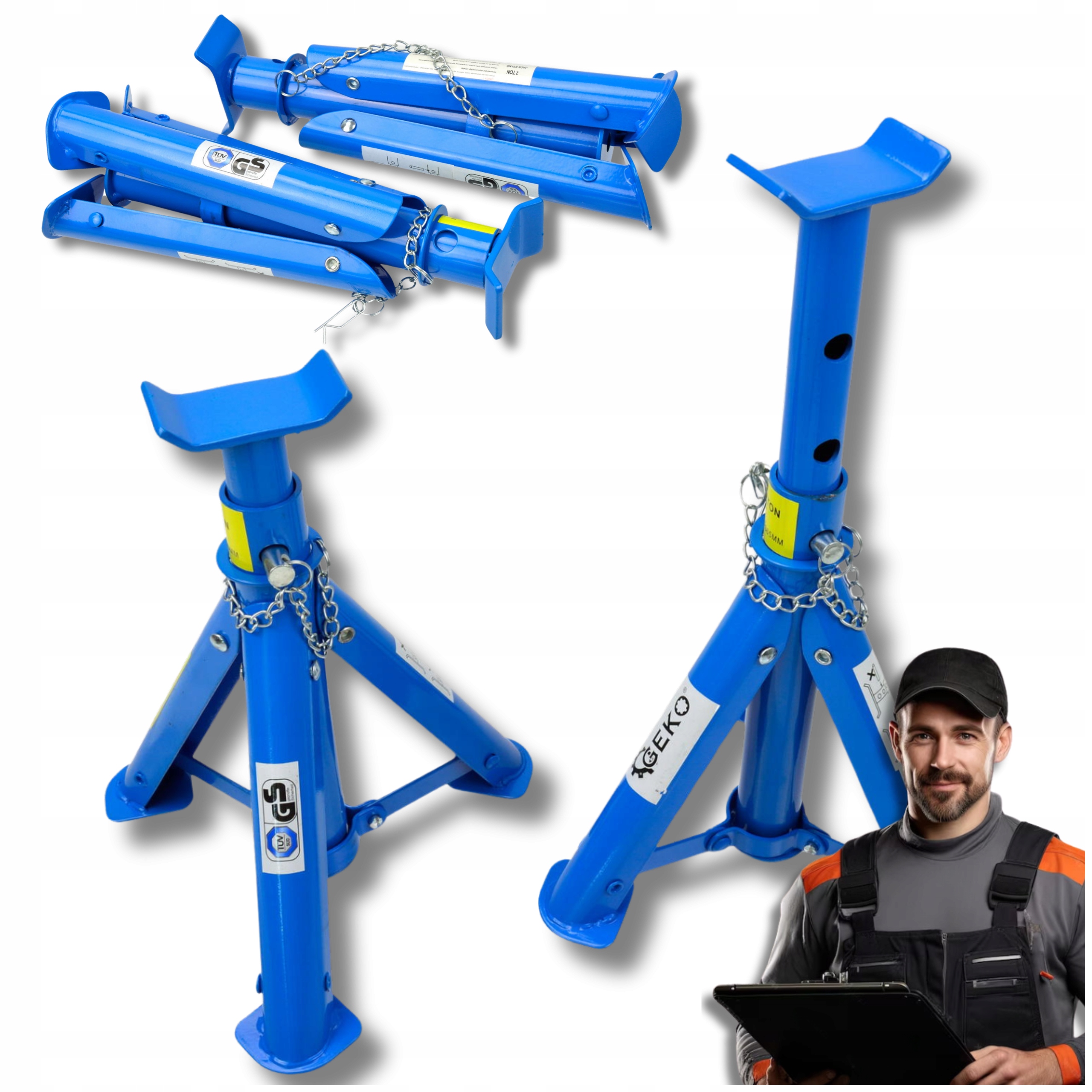 Стенды используются для поддержания автомобилей и других устройств после их поднятия с лифтом. После складывания они занимают небольшое пространство . Они имеют защиту в виде болта.
