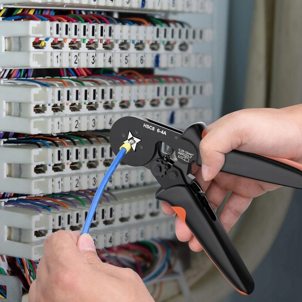 ✅ Обжимные клещи изготовлены из высокоуглеродистой стали, обладающей высокой износостойкостью, ударопрочностью и долговечностью. Поверхность водонепроницаема, устойчива к коррозии и изолирует.