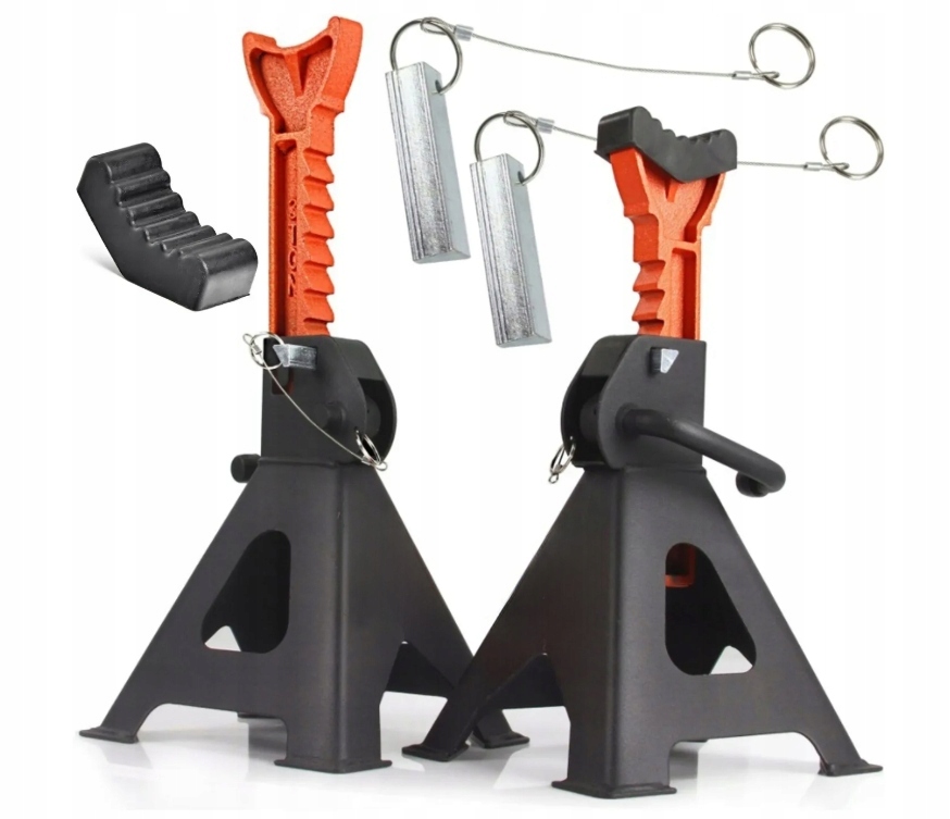 Качалки выдерживают предметы весом до 3 тонн. Они изготовлены из высококачественных материалов: в том числе: толстого стального листа. Они оснащены предохранителем, резиновыми накладками и храповым механизмом, который позволяет очень точно регулировать высоту на многих уровнях. Козелки оснащены двойным механическим замком, обеспечивающим максимальную безопасность!!! дополнительный замок в виде штифта