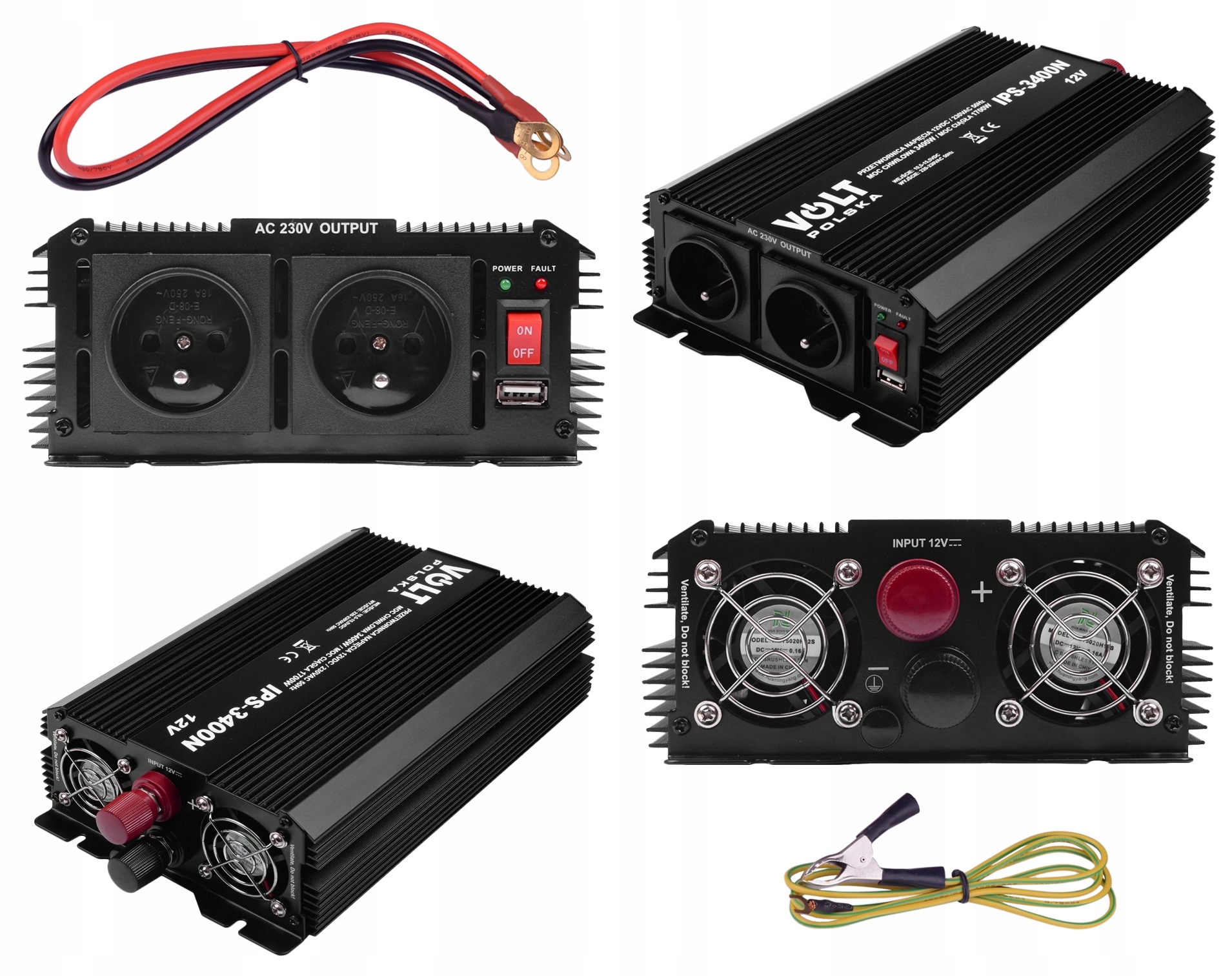 ПРЕОБРАЗОВАТЕЛЬ АВТОМОБИЛЬНОГО АККУМУЛЯТОРА 12 В 230 В 1700 Вт 3400 Вт VOLT POLSKA + USB