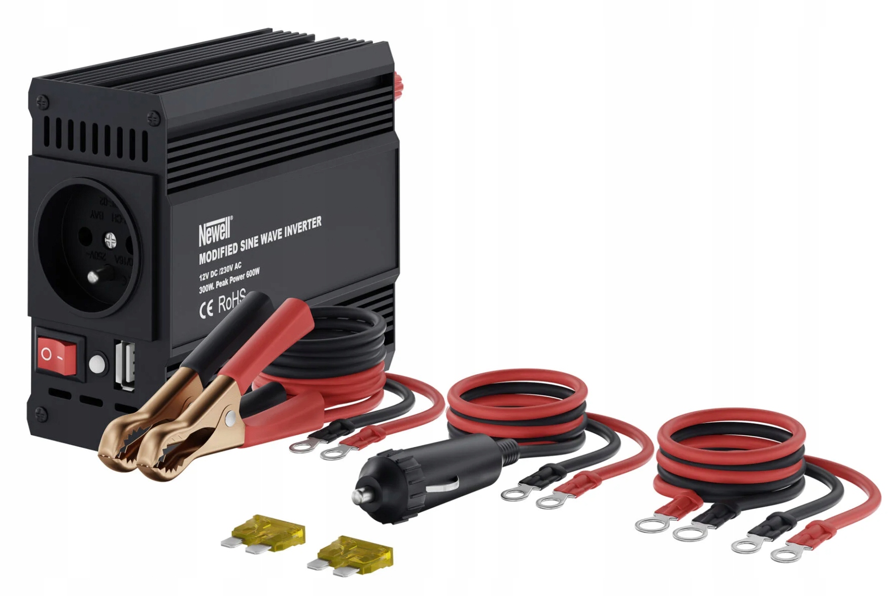 - Модель: преобразователь напряжения Newell с модифицированной синусоидальной волной - 12 В/230 В, 300 Вт