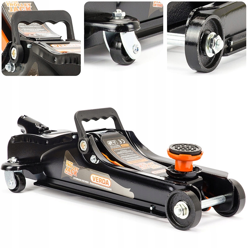 Высококачественный низкопрофильный гидравлический домкрат 2, ЛЯГУШКА типа 5Т. Изготовлен из толстого стального листа, обеспечивающего достаточную жесткость конструкции. Удобен в использовании, оснащен 4 колесами, которые позволяют быстро разместить домкрат в нужном месте. Работа в диапазоне от 80 до 360 мм. Низкопрофильный домкрат можно использовать при работе с заниженными автомобилями.