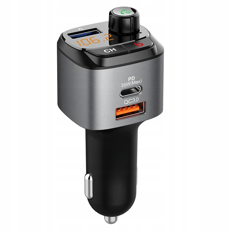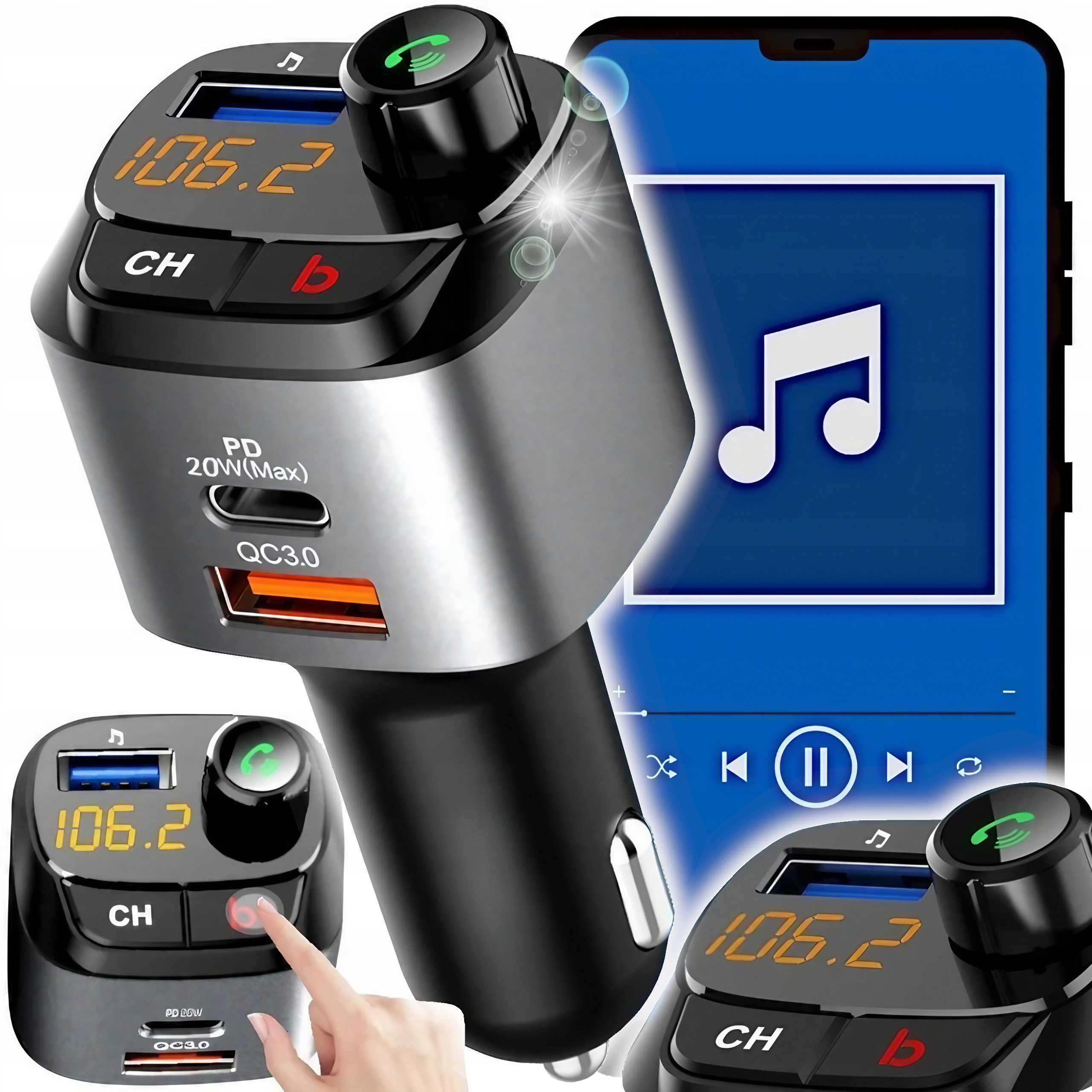 ✔️ Эффективный передатчик со встроенным комплектом громкой связи. Он будет воспроизводить вашу любимую музыку/подкаст без потери качества. Кроме того, вы можете быстро заряжать устройства, которые вам нужны в путешествии на автомобиле (видеорегистратор, телефон и т. д.)