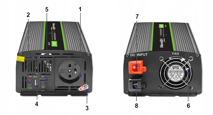 Преобразователь марки Qoltec является чистым синусоидом, он выдает ток такой же, как в розетке 230 В, обеспечивая безопасность всех подключенных устройств. Он будет идеален как при отключении электричества, так и в путешествии, когда у нас нет доступа к розетке.