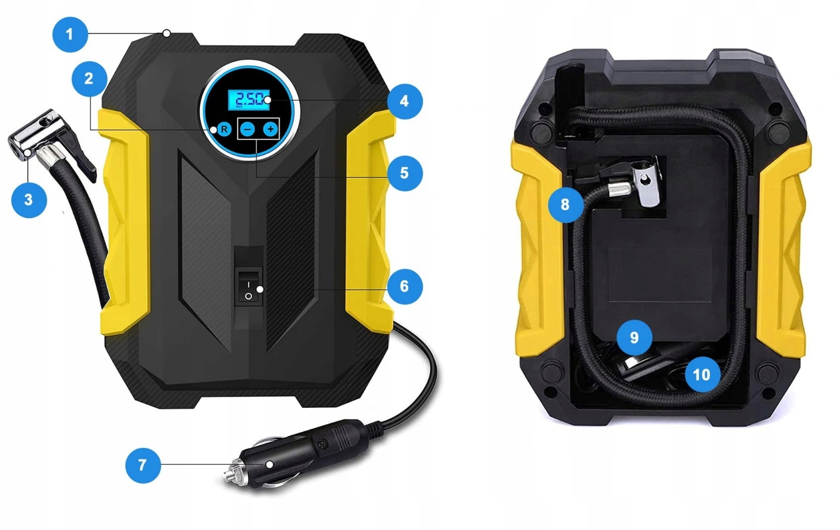 - Максимальное давление: 150 фунтов на квадратный дюйм (10 бар) - идеально подходит для автомобилей, мотоциклов, велосипедов и других транспортных средств. Он выключается после достижения набранного давления Для автомобиля более легкой розетки. Спортивные мячи