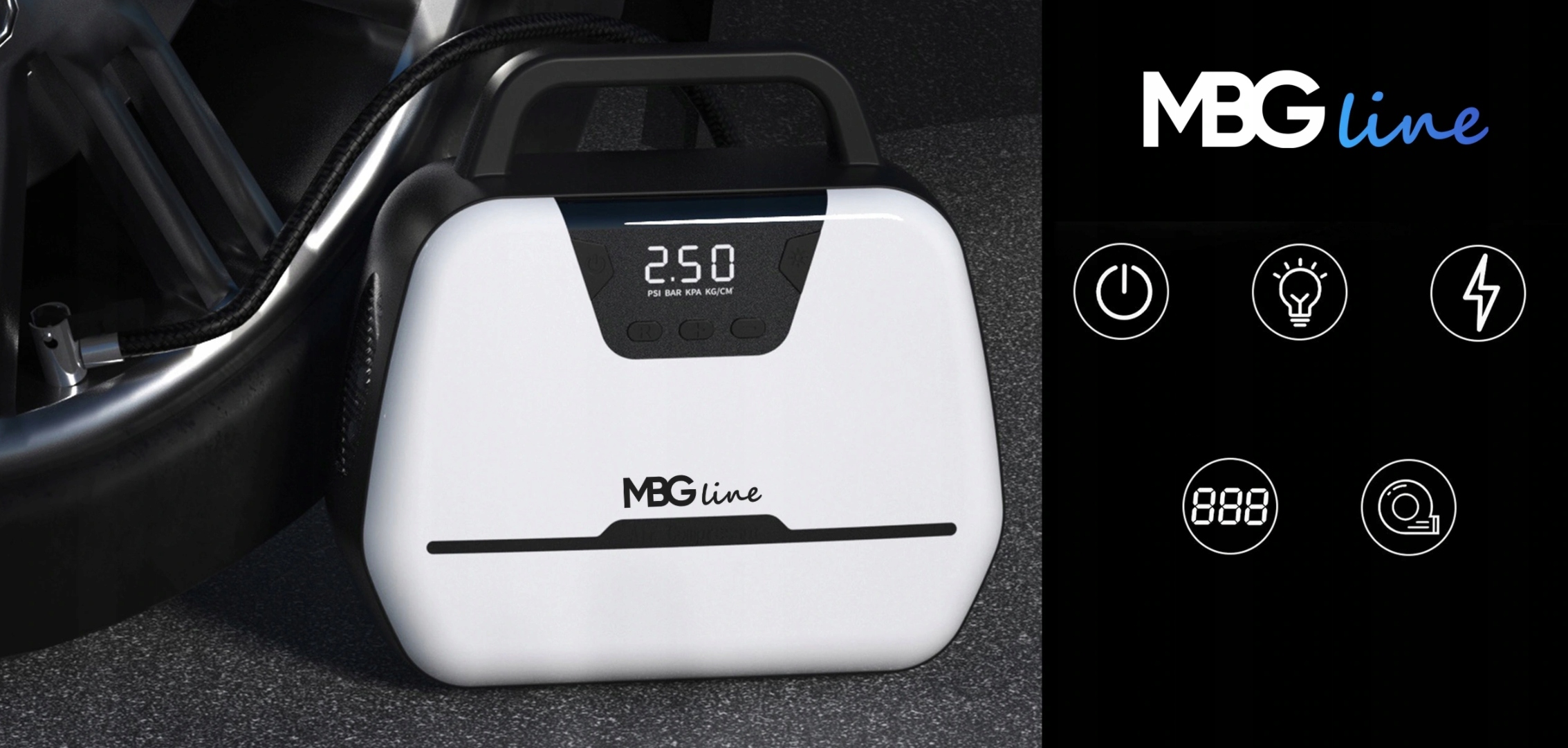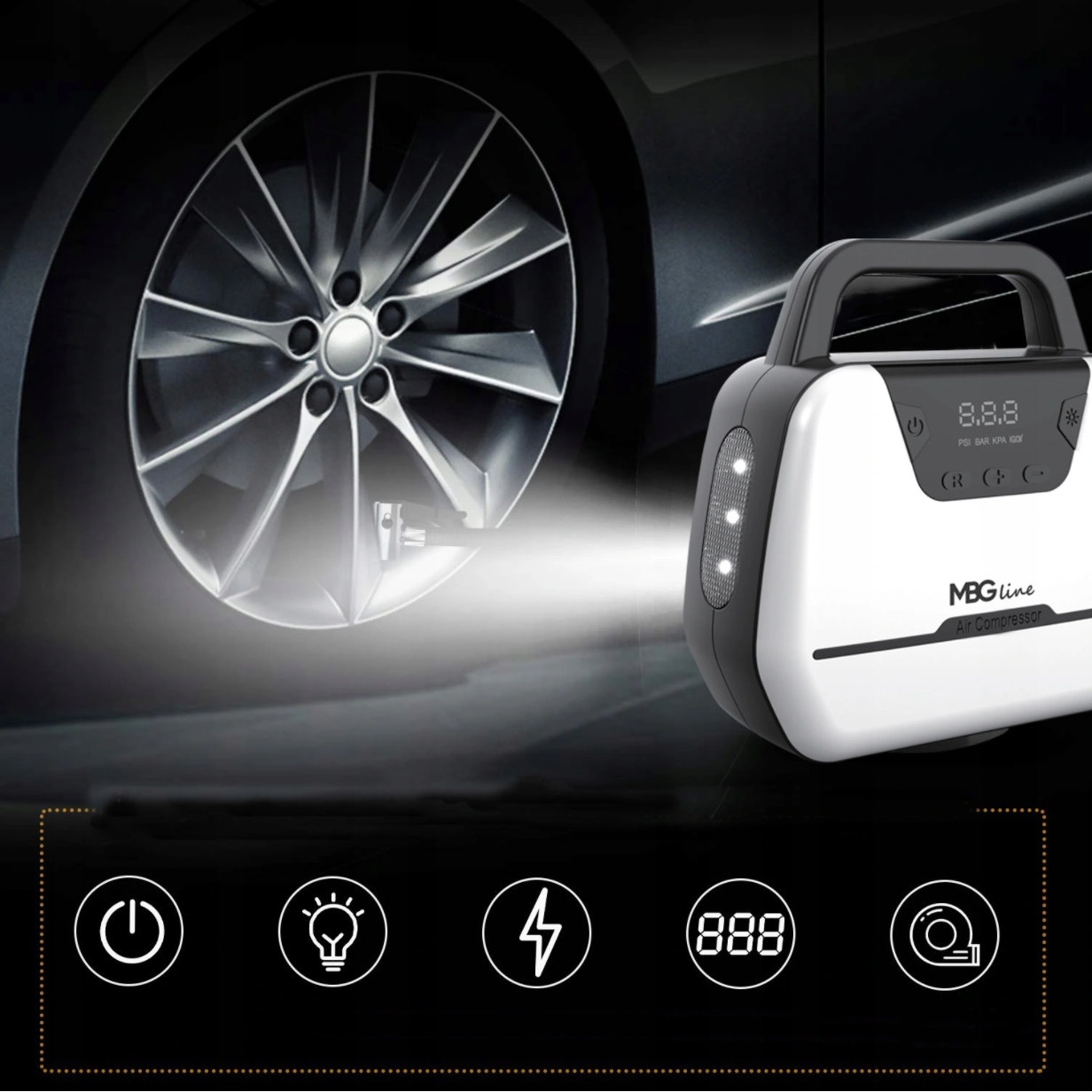 Включите компрессор и подождите, пока компрессор накачает колесо до заданного давления и завершит свою работу.Встроенная светодиодная лампа обеспечивает удобное освещение колеса.
