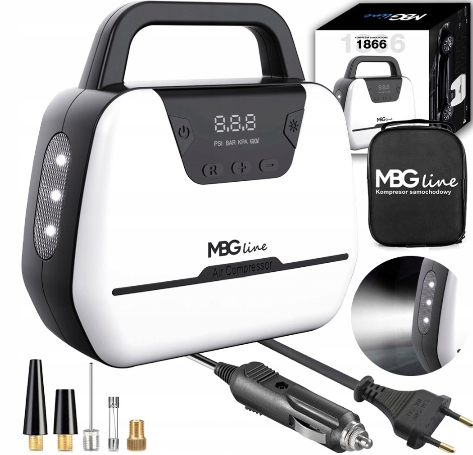 КОМПРЕССОР / АВТОМОБИЛЬНЫЙ / КОМПРЕССОР / НАСОС 35л/мин С ФОНАРЬЕМ И ЖК-ДИСПЛЕЕМ С НАБОРОМ АКСЕССУАРОВ + КРЫШКА - ВЕРСИЯ 12В/230В!
