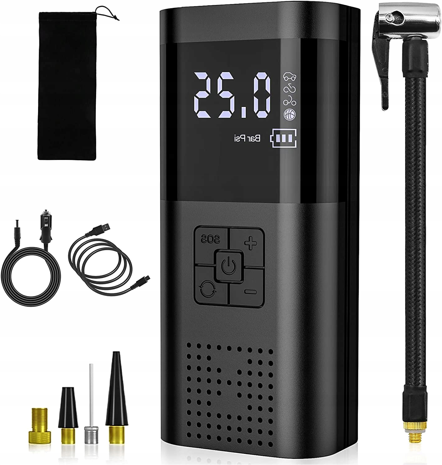 Батарея насоса с емкостью 6000 мАч (2000 мАч x 3) - это не только помощник при заполнении шин, но и мобильным источником питания для смартфонов и других устройств. Набор включает в себя 1 -метровый USB -кабель USB (без адаптера зарядного устройства 5 В/2А). 📱