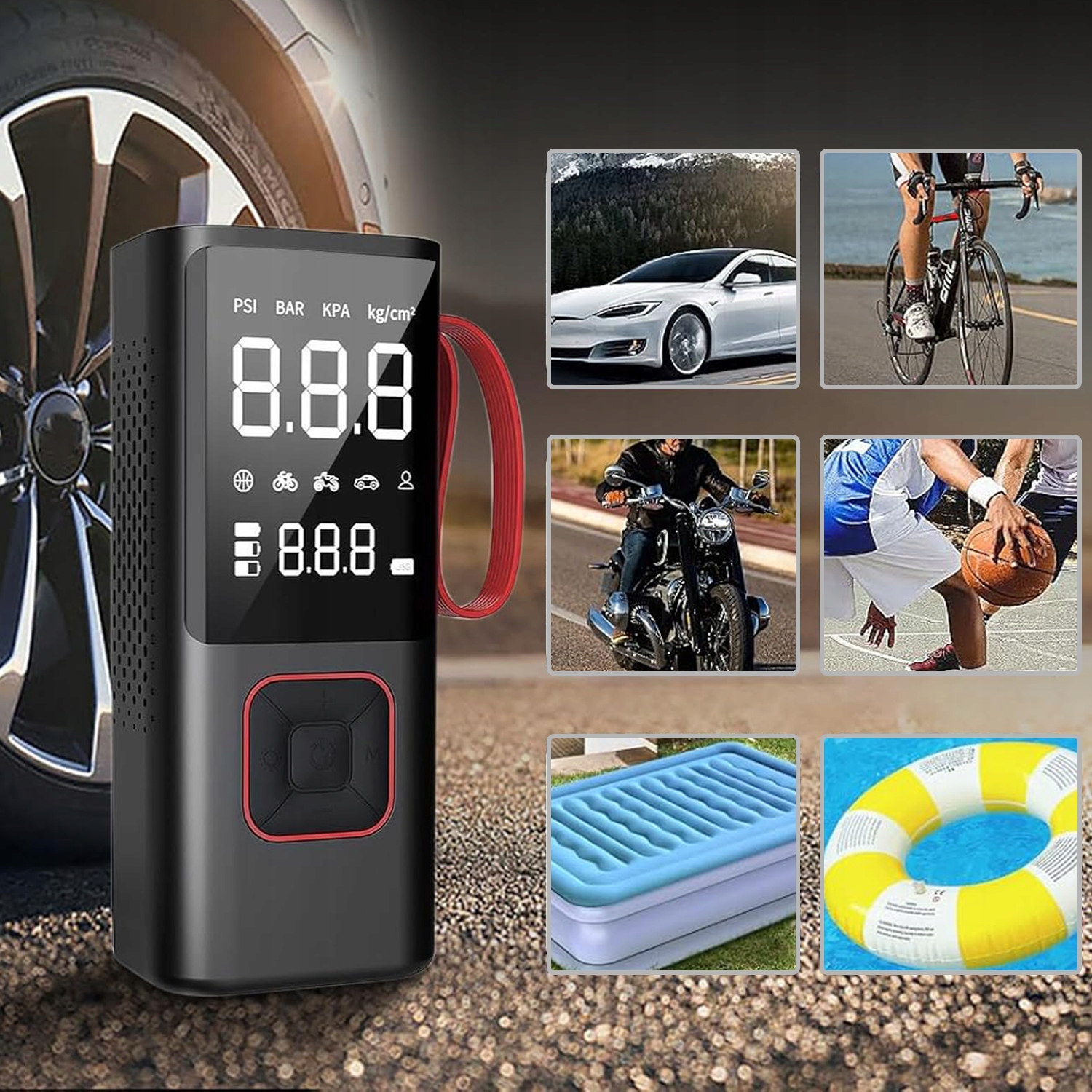 - ⚽【 Портативный и беспроводной дизайн 】⚽: Насос беспроводной шины имеет беспроводную конструкцию. Он имеет небольшой размер, легкий и прост в ношении, что является большим контрастом по сравнению с традиционными пожилками, которые занимают много места и являются большими. Наши шинные компрессоры компактны и могут легко храниться в автомобиле, багажнике на велосипеде или рюкзаке. Этот продукт необходим для водителей, велосипедистов и авантюристов: портативный беспроводной насос для автомобильных шин.