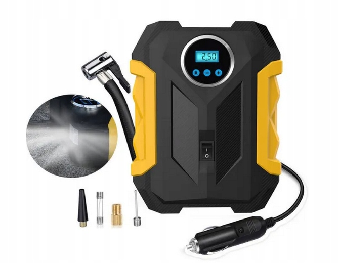 После запуска автомобиля поместите кабель питания в прикуриватель автомобиля, затем поместите насадку-качку в клапан, введите давление, которого вы хотите достичь на компрессоре, включите компрессор, который выключится сам после накачивания шины.