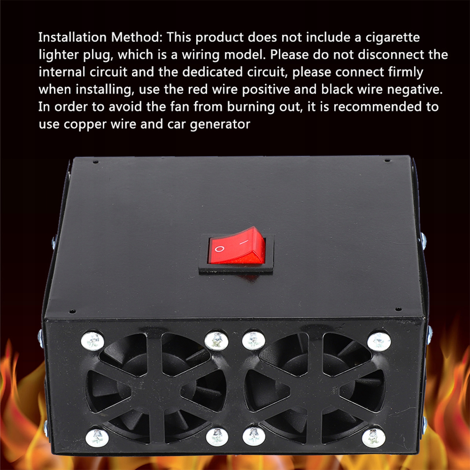 Способ установки: В комплект поставки этого продукта не входит вилка автомобильного прикуривателя, которая представляет собой проводную модель. Пожалуйста, не отключайте внутреннюю цепь от выделенной цепи. При установке надежно подключайте, используйте красный положительный провод и черный отрицательный провод. Чтобы вентилятор не сгорел, рекомендуется использовать медный провод и автомобильный генератор