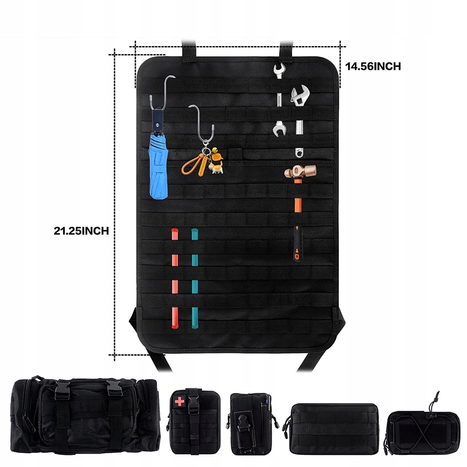 - Этот тактический органайзер на спинку автомобильного сиденья изготовлен из нейлоновой ткани, которая прочна, водонепроницаема и обеспечивает длительную защиту от царапин.