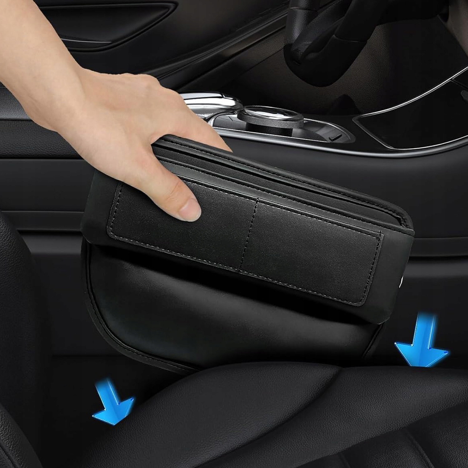 органайзер для автомобильного сиденья. Просто поместите его. в салоне вашего автомобиля. Специальный кожаный слой идеально прилегает к шву сиденья. Идеальный подарок, который позволит добавить место для хранения вещей и привести в порядок центральную консоль. Подарите их своим друзьям и близким.