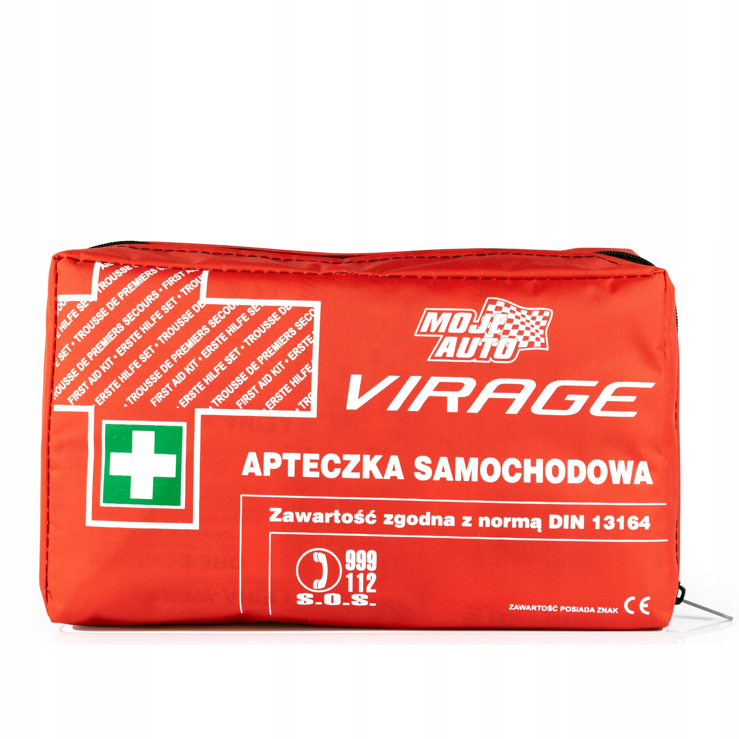 Автомобильная аптечка в чехле с клеем, позволяющим прикрепить аптечку к обивке салона. Аптечка соответствует требованиям стандартов ЕС. Состав согласно DIN 13164.