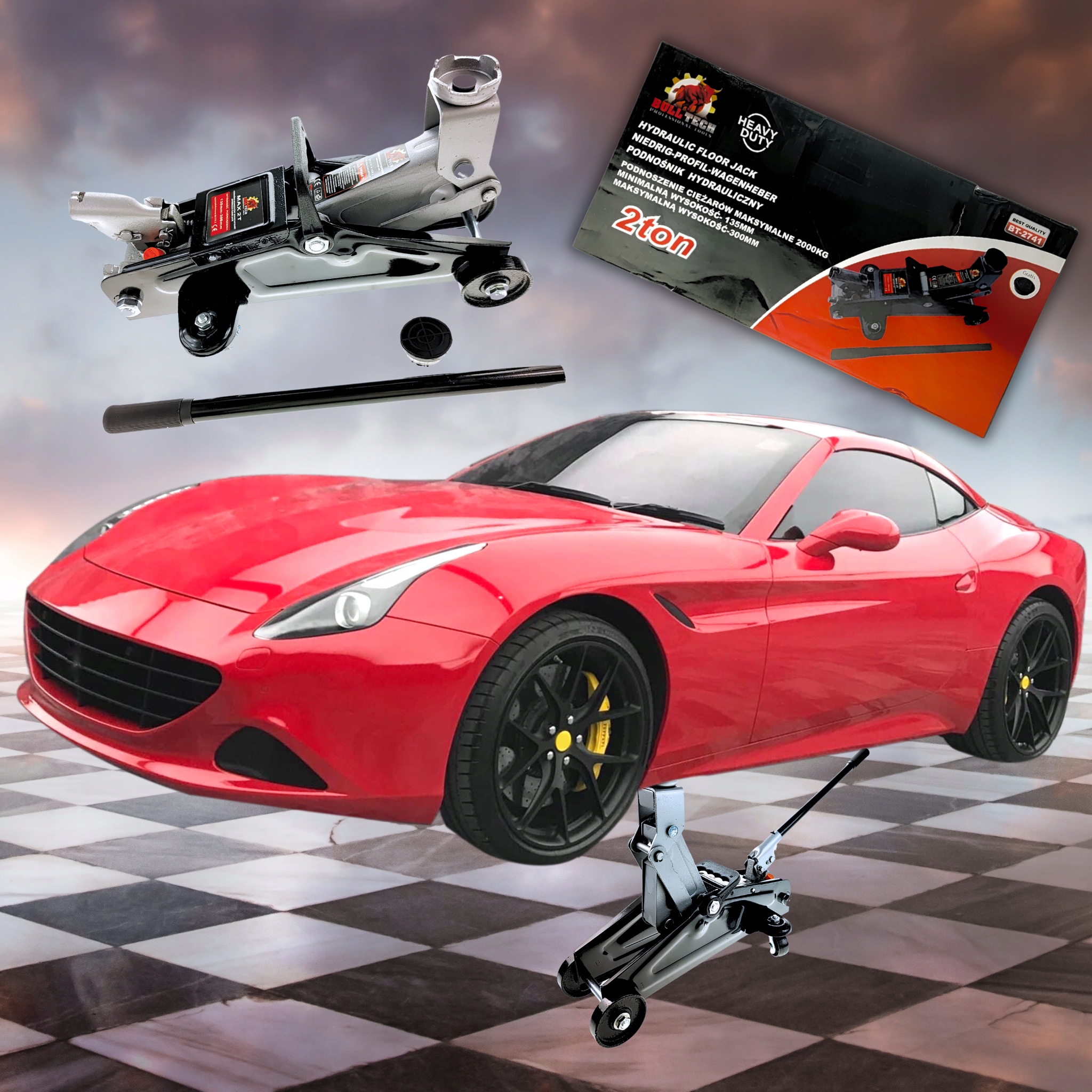 ✔️ Домкрат имеет низкий профиль (широкий диапазон подъема 135-300 мм), поэтому он особенно подходит для автомобили с низкой подвеской