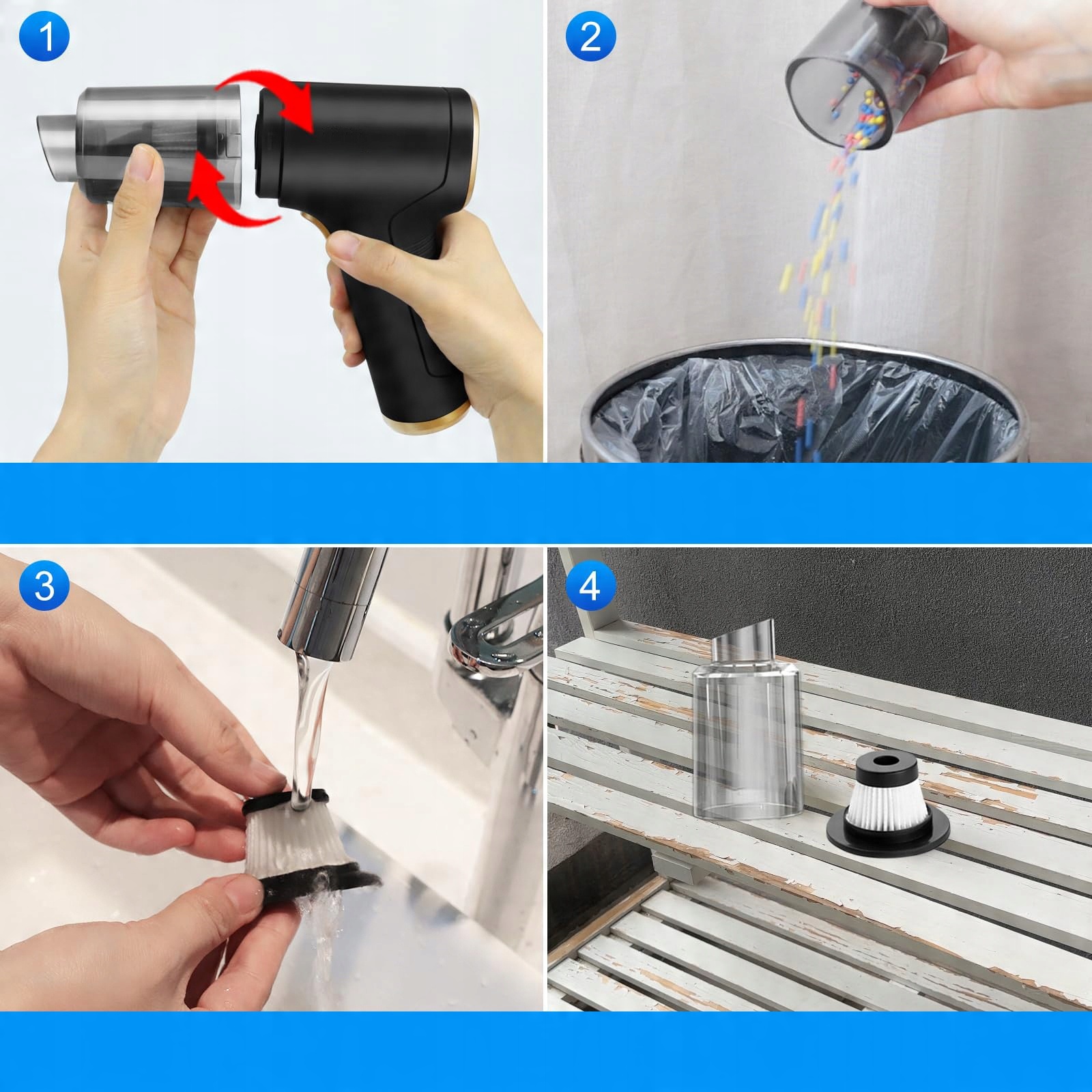 Компактный портативный беспроводной ручной пылесос идеально подходит для мелкой уборки и хорошо работает в труднодоступных местах, куда невозможно добраться с помощью метлы, пылесоса или швабры. .