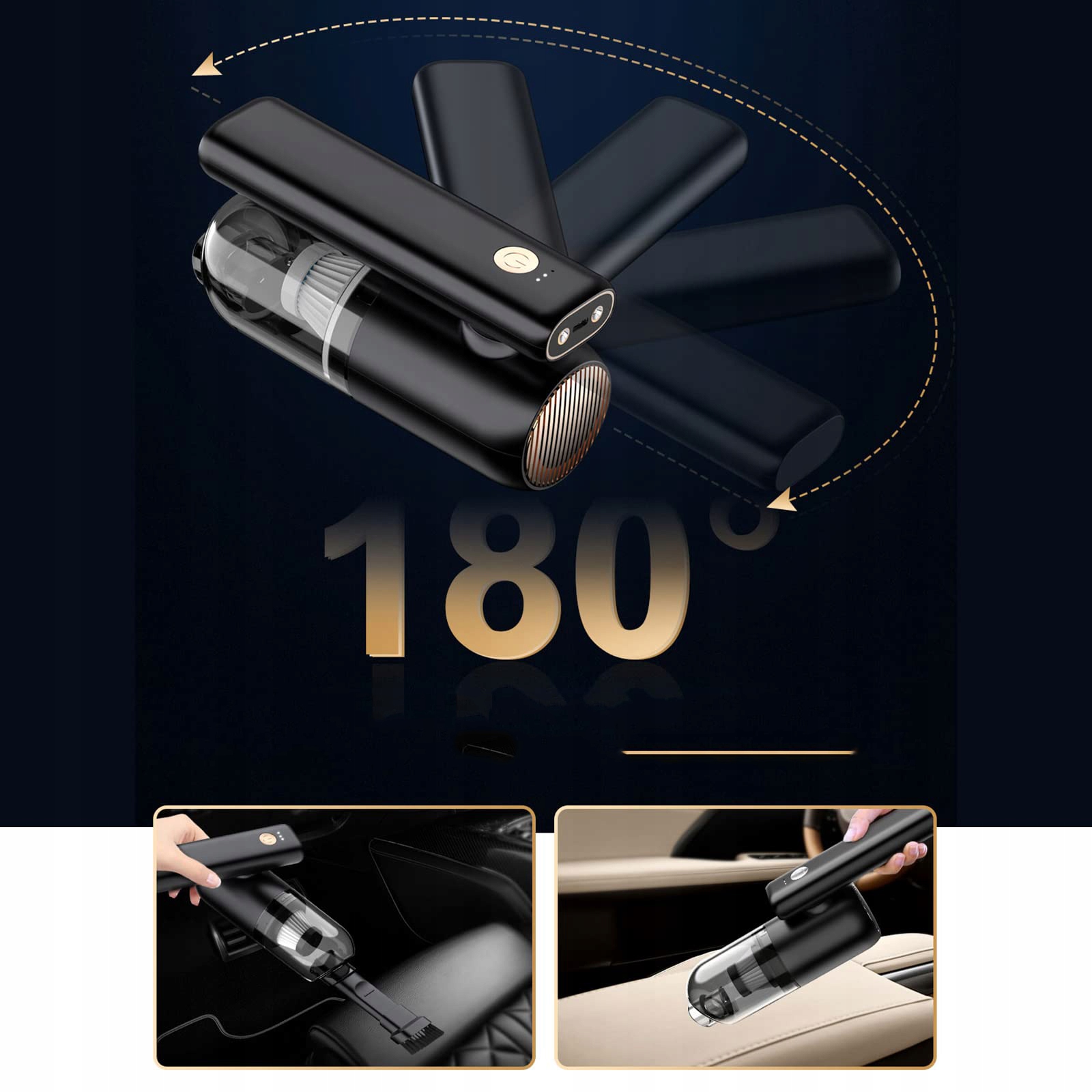 Автомобильный пылесос оснащен высокоэффективным двигателем со скоростью 60 000 об/мин, сильной и стабильной мощностью всасывания, тщательно очищает ваш автомобиль, легко удаляет волосы, пыль и остатки пищи и отвечает вашим требованиям. ежедневные потребности в уборке.
