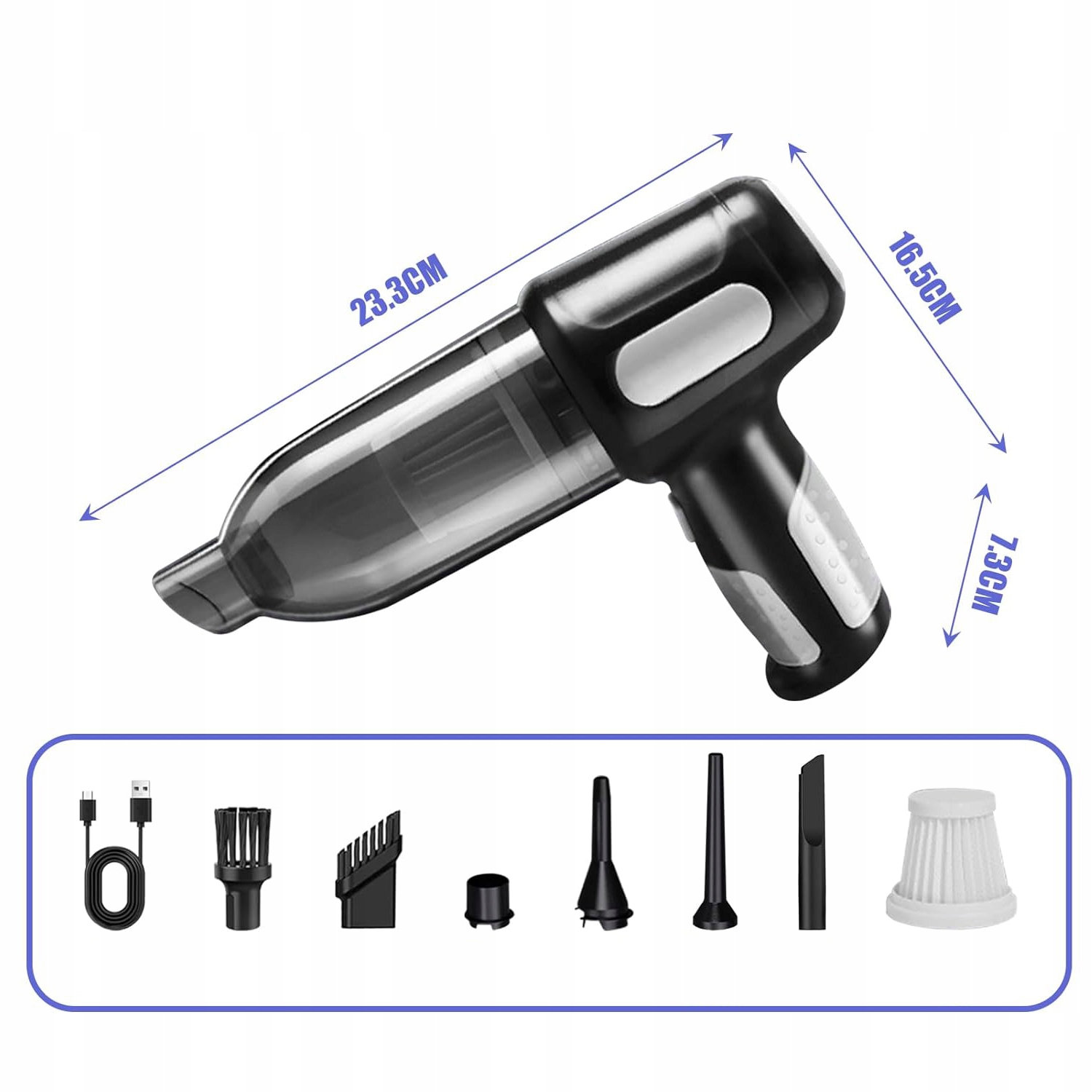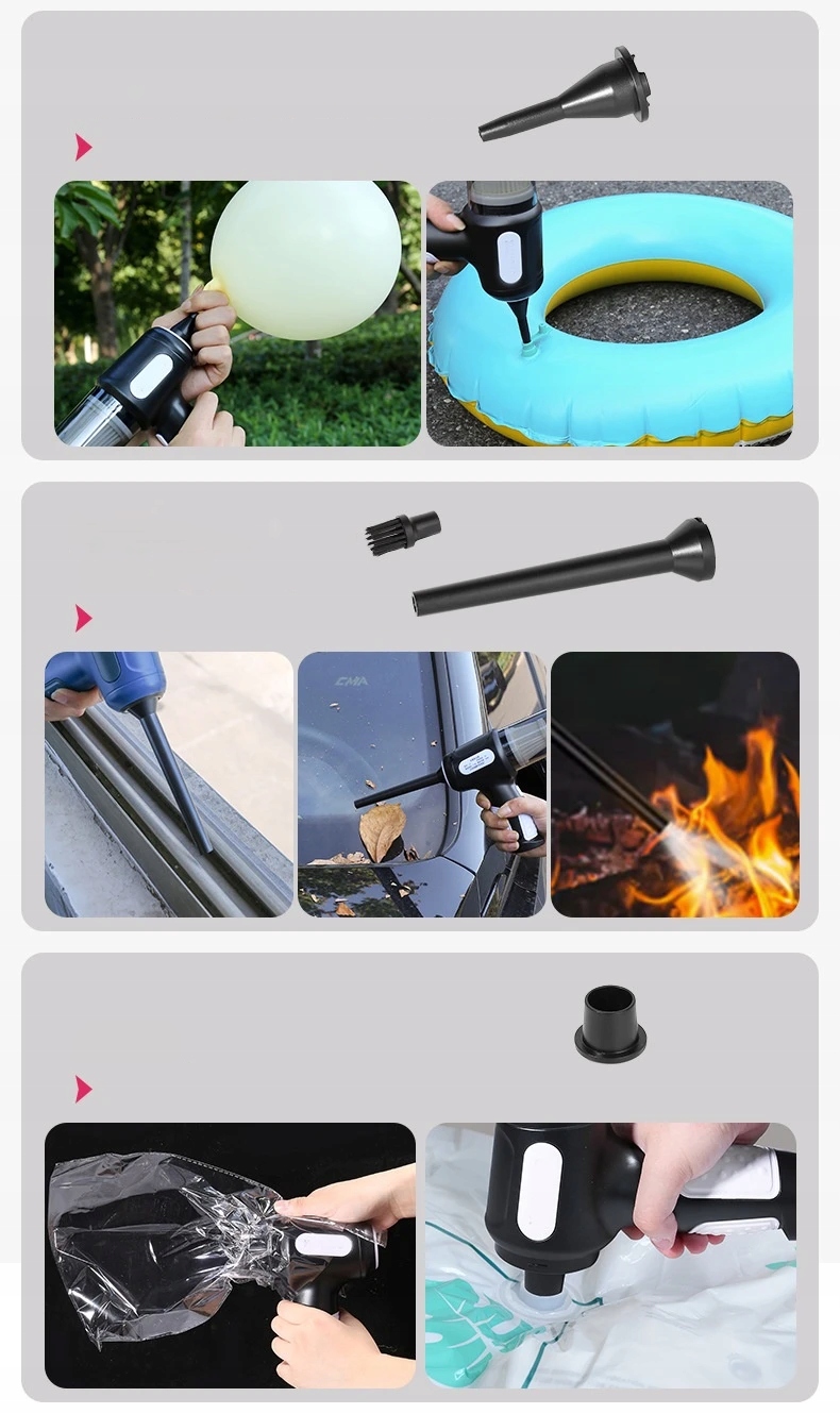 Мини-беспроводной пылесос с различными насадками и насадками-щетками для уборки пыли. Вакуумное всасывание, вакуумная выдувка, вакуумное сжатие и надувание в одном устройстве для удовлетворения различных потребностей в уборке.