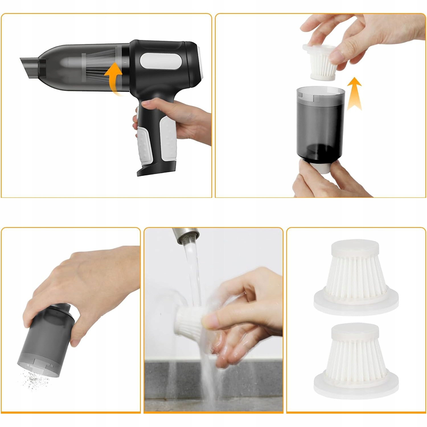 В мини-пылесосе используется моющийся экологически чистый фильтр, который можно использовать повторно, чтобы избежать неприятных запахов. Емкость видимого пылесборника составляет примерно 0,79 литра. Чистый и сухой для следующего использования.