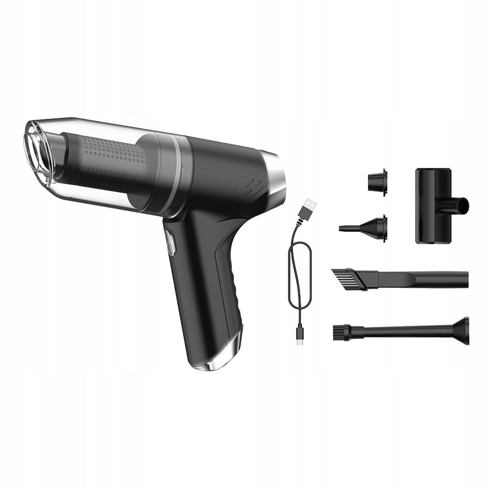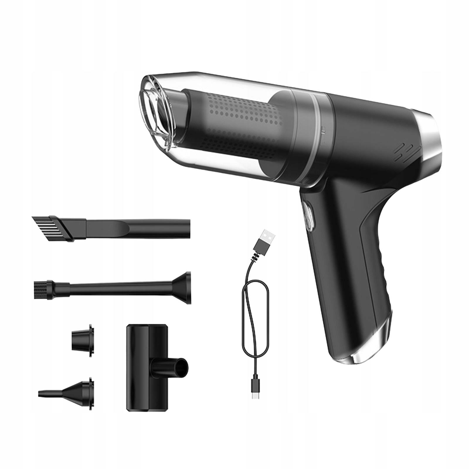 [Набор для чистки]Автомобильный пылесос имеет 4 насадки для удовлетворения различных потребностей, а нагнетатель щеток подходит для выдувания пыли в узких местах, таких как компьютерные клавиатуры, хосты и т. д.