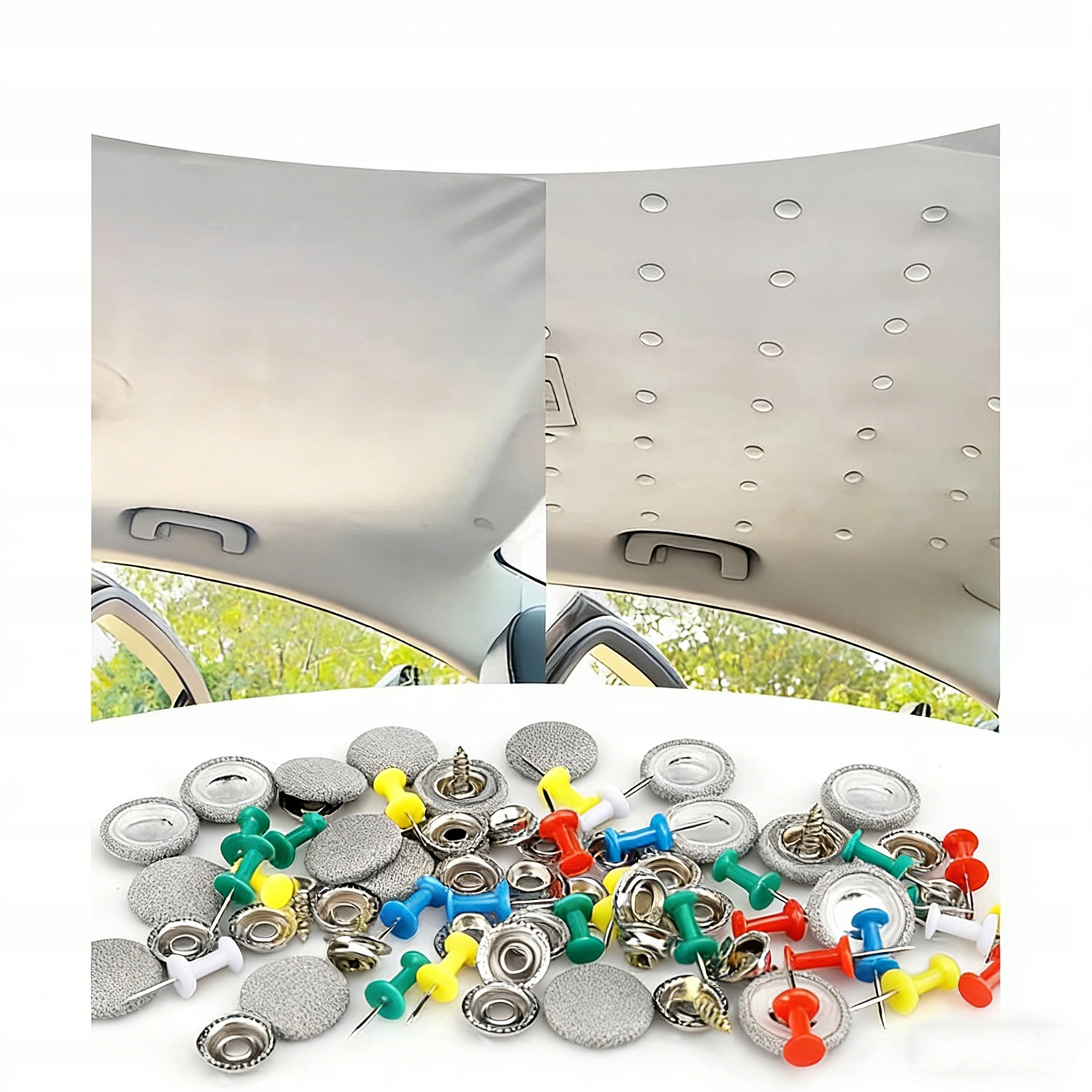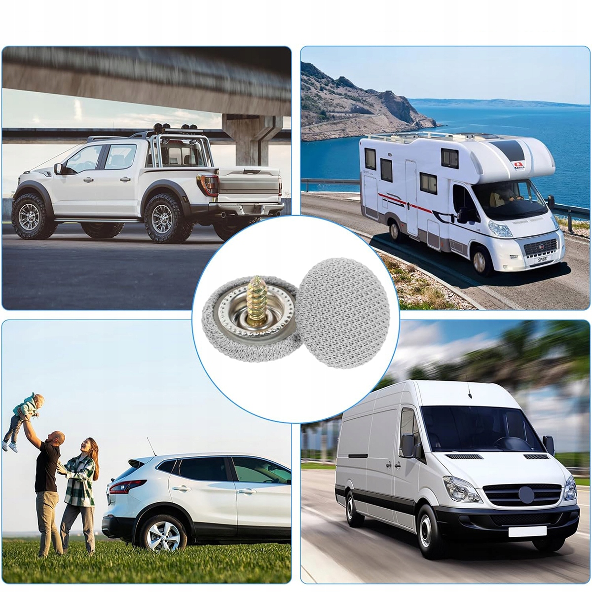 Комплект для установки обивки потолка автомобиля, как правило, подходит для большинства автомобилей, представленных на рынке. Диаметр самоконтрящихся заклепок составляет (ок.) 20 мм, что обеспечивает универсальность в грузовых автомобилях, легковых автомобилях, автобусах, фургонах и т. д.