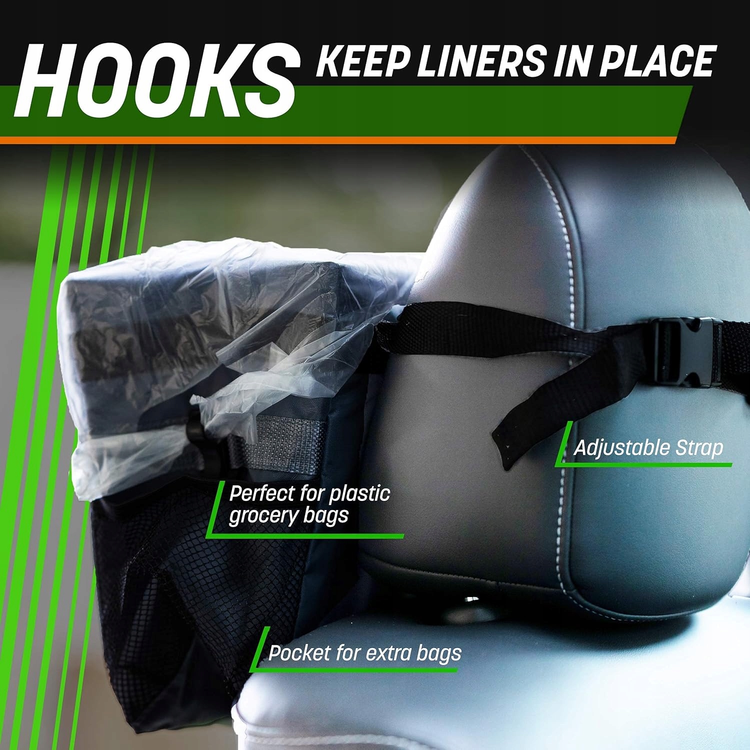 - Простая установка: этот автомобильный органайзер для мусора крепится к любому подголовнику, дверной ручке или консоли с помощью легко регулируемого ремня с быстрым зажимом.