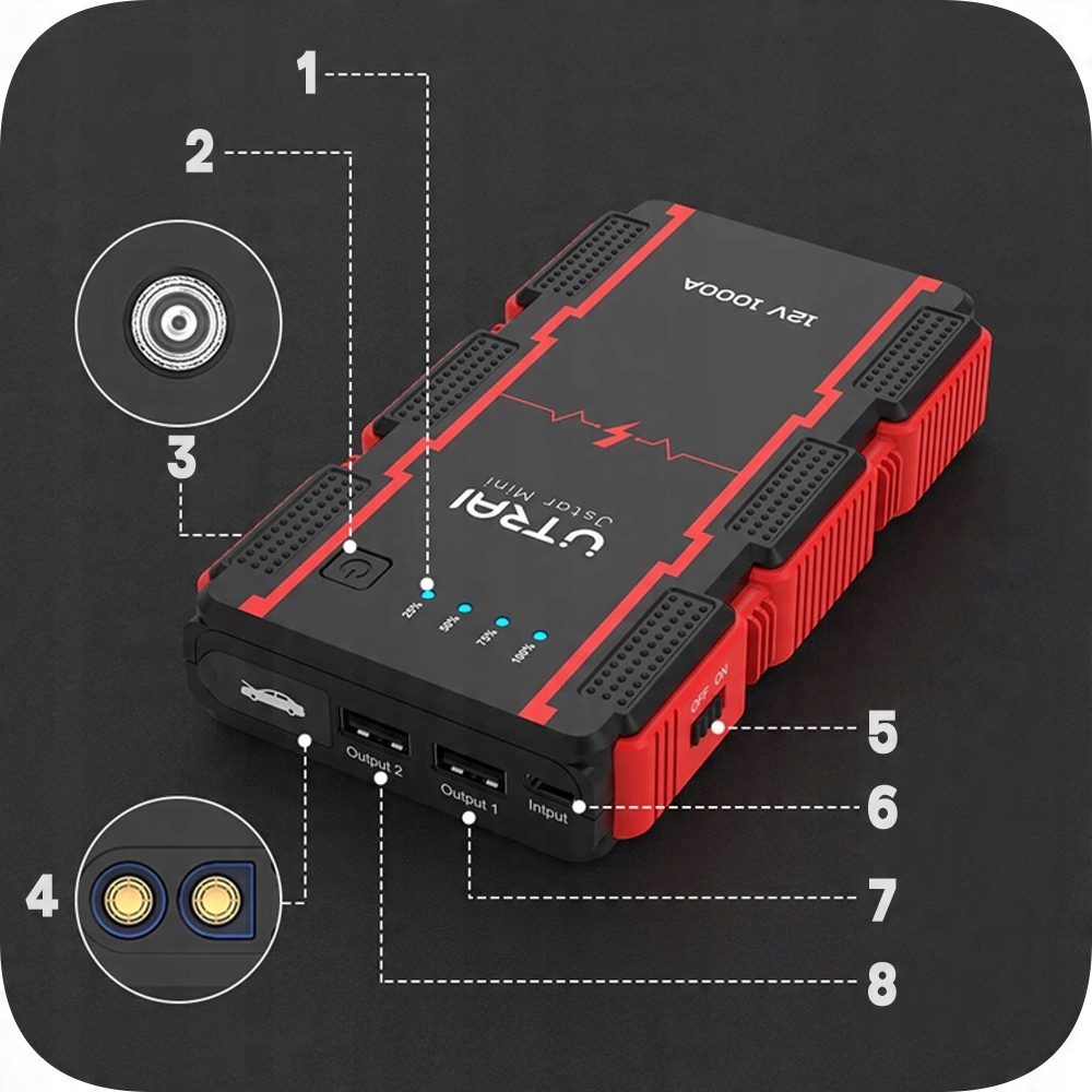 АВТОМОБИЛЬНЫЙ СТАРТЕР-БУСТЕР ЗАПУСК UTRAI MINI 8000мАч 1000А 3в1 POWERBANK