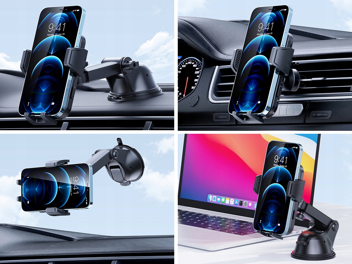 Изделие имеет подставку, благодаря которой мы можем прикрепить наш держатель к приборной панели или окну. После нажатия встроенной кнопки вакуумная присоска, расположенная на кронштейне подставки, прикрепит ручку. Мы легко можем установить его на лобовое стекло, вентиляционную решетку автомобиля, приборную панель или другую плоскую поверхность.