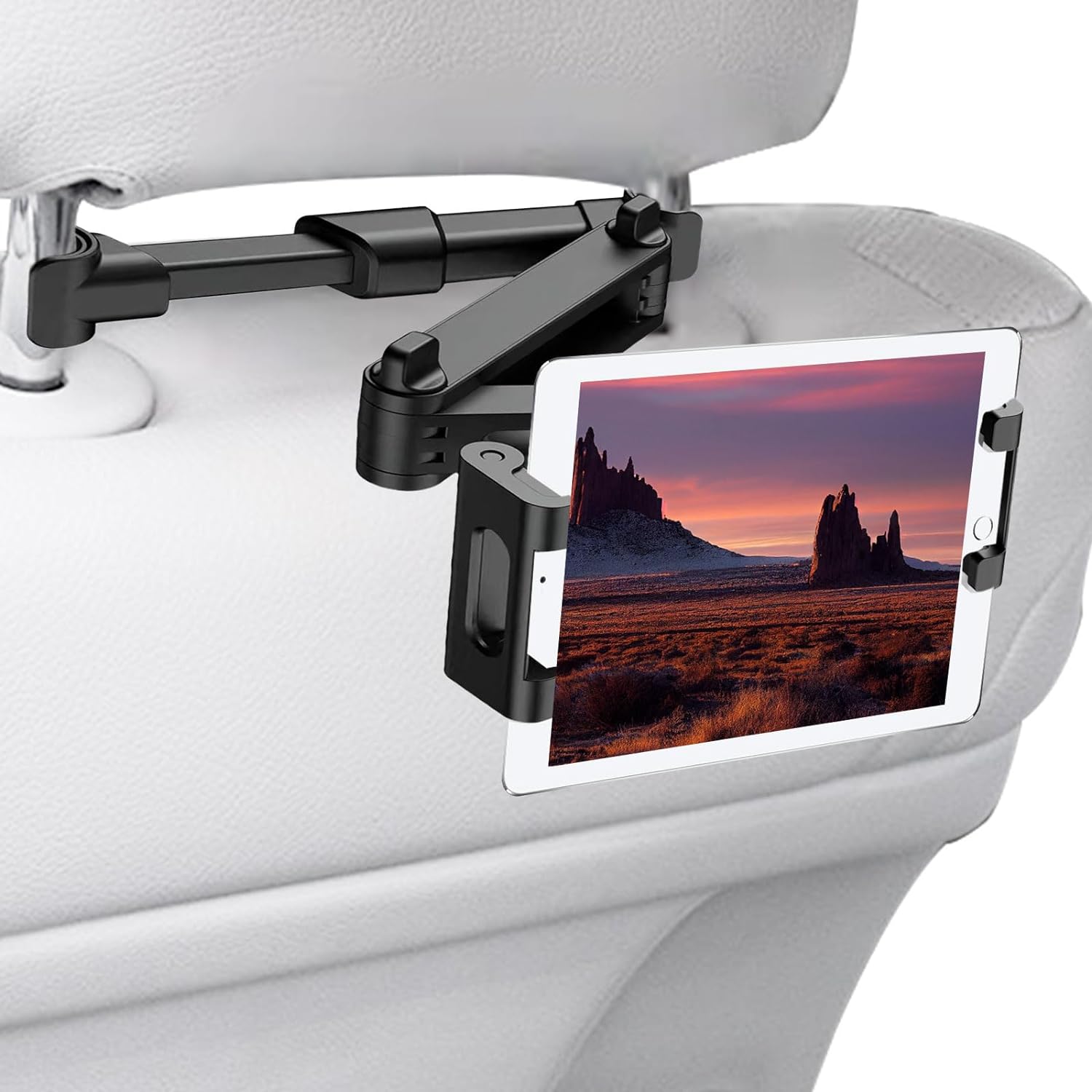 1. Универсальная совместимость: Этот черный складной держатель на подголовнике для планшета идеально подходит для iPad и других планшетов с диагональю 4,5–14 дюймов.