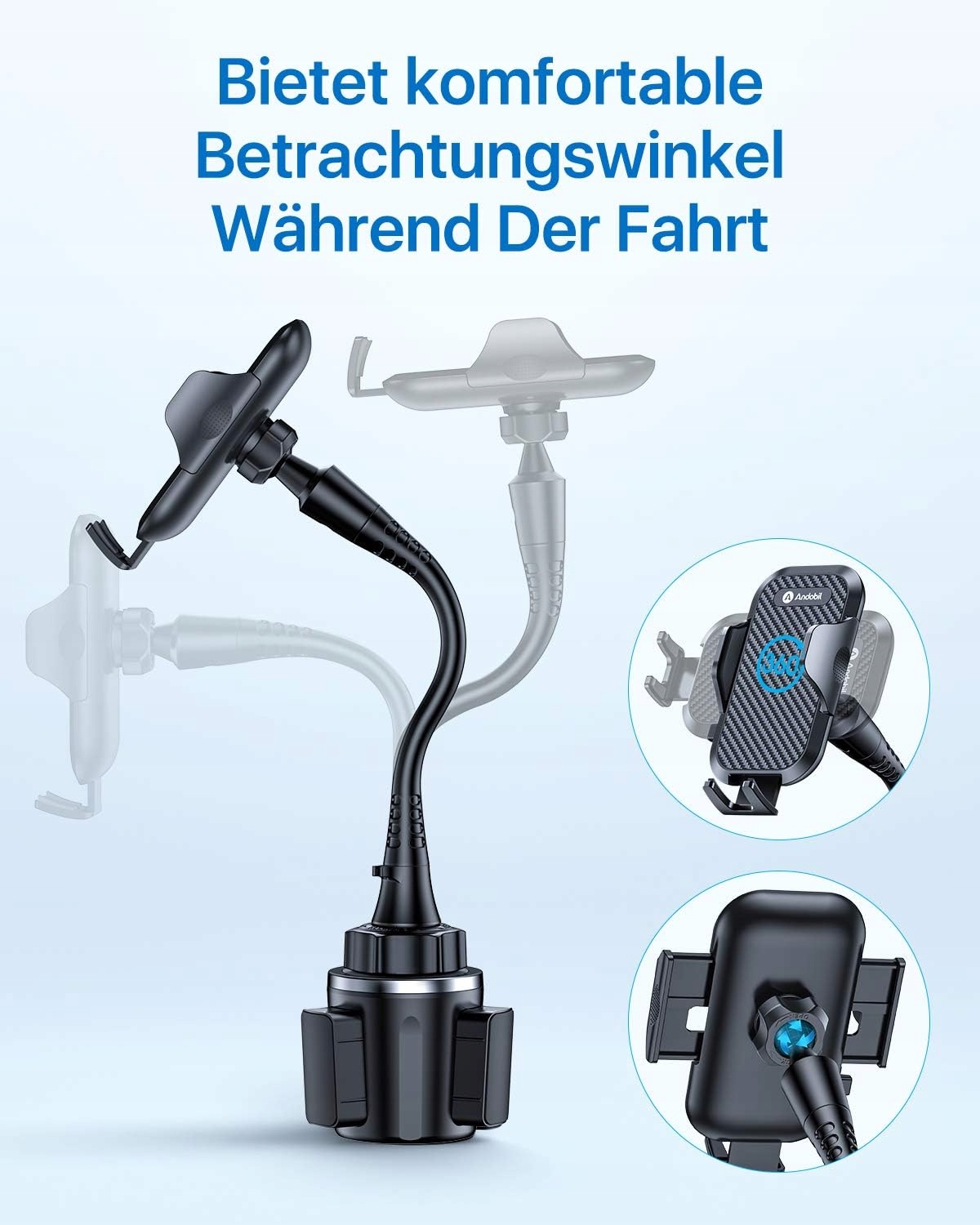 Держатель для мобильного телефона Andobil, автомобильный держатель для напитков, бесконтактный автомобильный держатель для мобильного телефона с прямым зажимом и регулируемый держатель для чашки на гибкой стойке, автомобильный держатель, совместимый с iPhone 12/Samsung S21 и т. д.