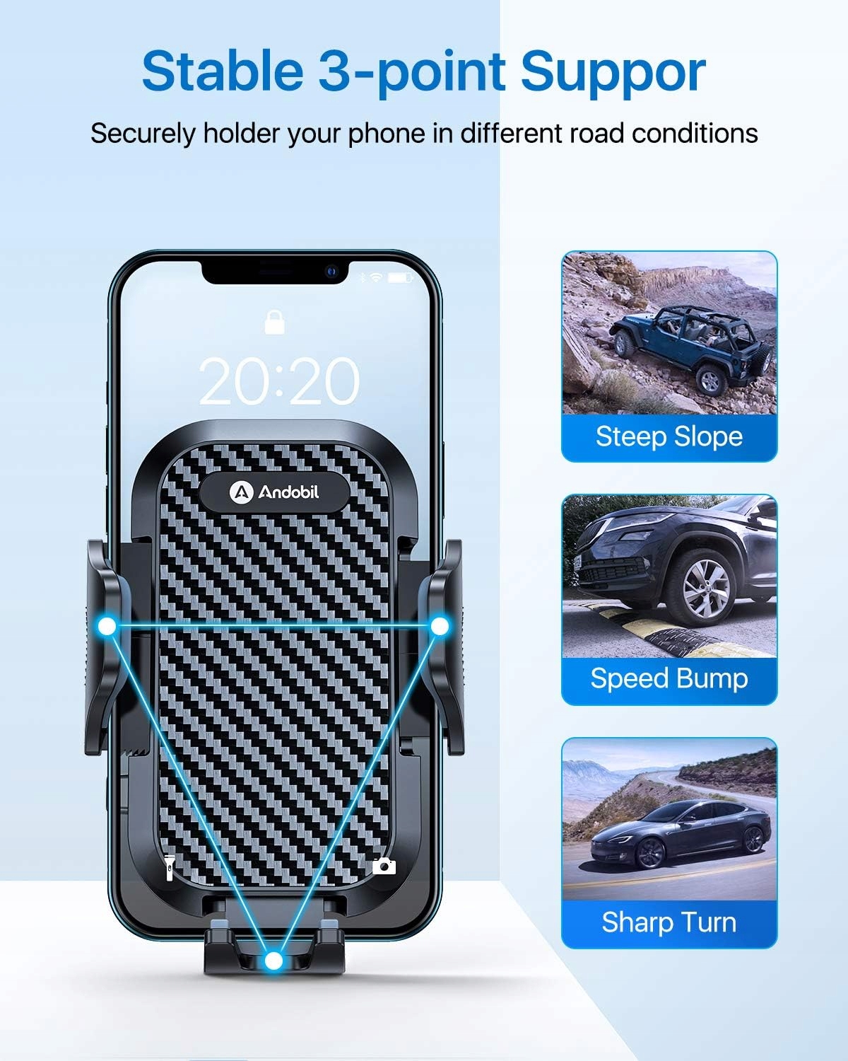 Автомобильный держатель для мобильного телефона Andobil имеет самую длинную горловину длиной 21 см, что длиннее, чем у других марок. Легко просматривайте любимые приложения во время вождения, например навигацию или текущие приложения.