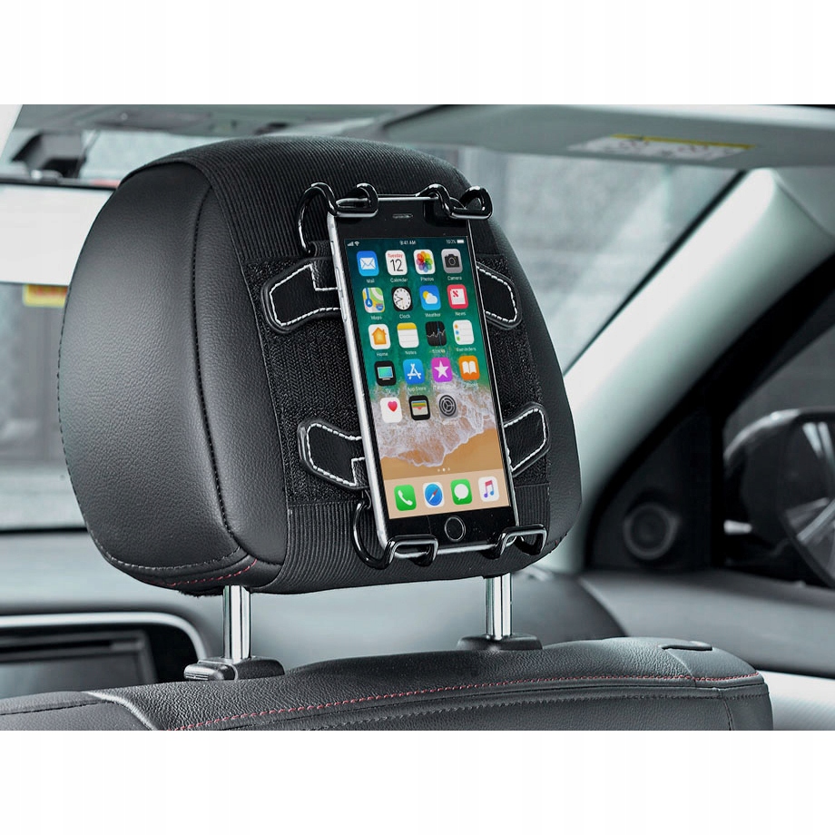 - Универсальный автомобильный держатель для планшетов, телефонов и смартфонов, крепящийся на подголовник на сиденье водителя или пассажира.
