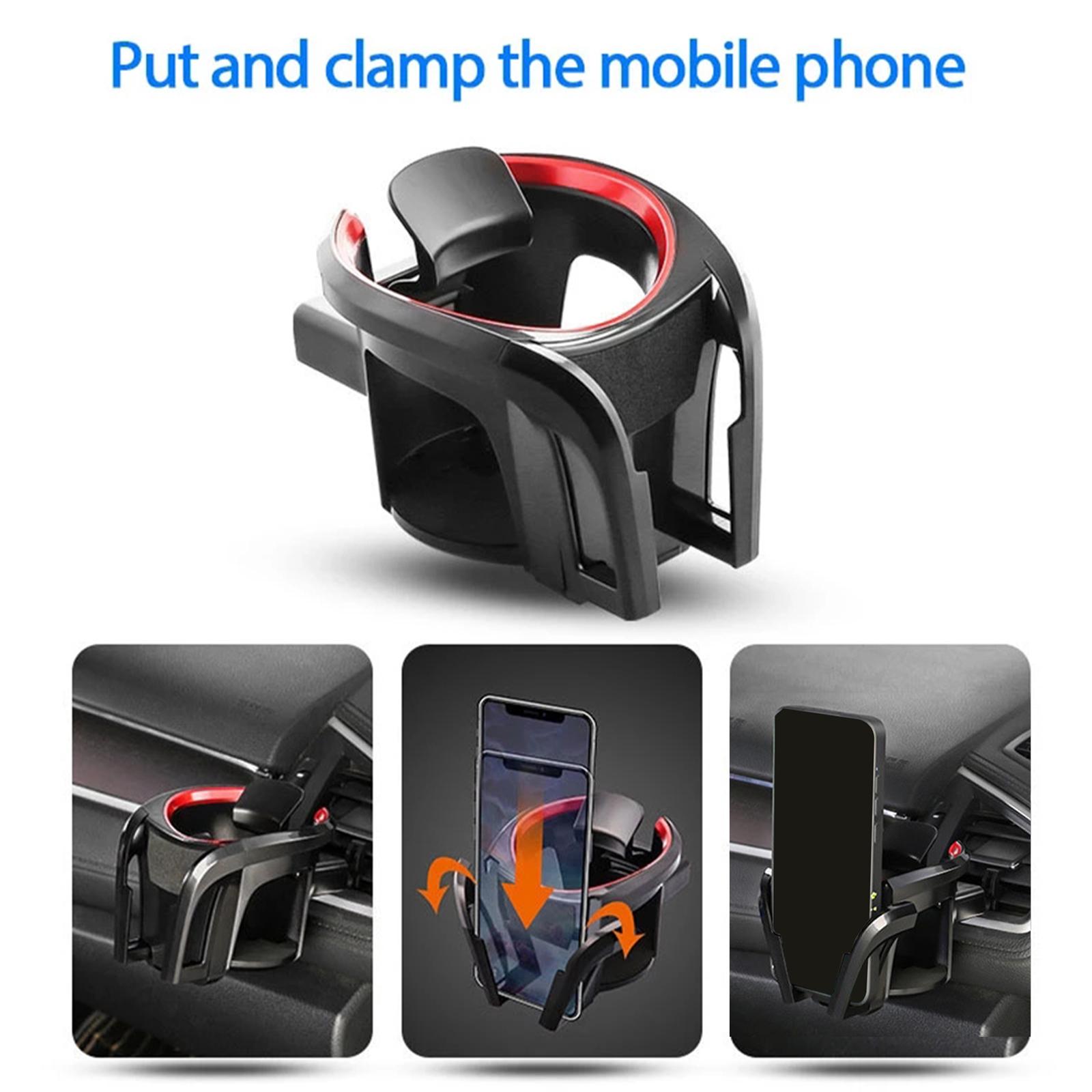 Автомобильный адаптер-расширитель для держателя чашки Vents с подставкой для телефона, черный и красный