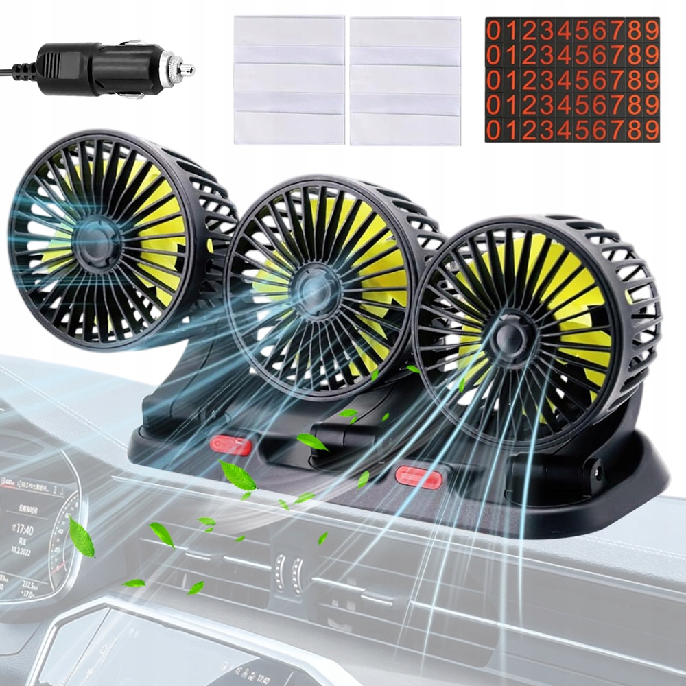 АВТОМОБИЛЬНЫЙ ВЕНТИЛЯТОР 12 В, 3 ВЕНТИЛЯТОРА, ВРАЩЕНИЕ НА 360° ДЛЯ АВТОМОБИЛЬНОГО КЕМПИНГА
