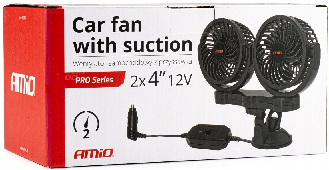 ВЕНТИЛЯТОР AMiO PRO, АВТОМОБИЛЬНЫЙ ВЕНТИЛЯТОР, С ПИТАНИЕМ ОТ АВТОМОБИЛЬНОГО ПРИЖИГАТЕЛЯ 12 В, КРЕПЛЕННЫЙ НА ПРИСОСКЕ
