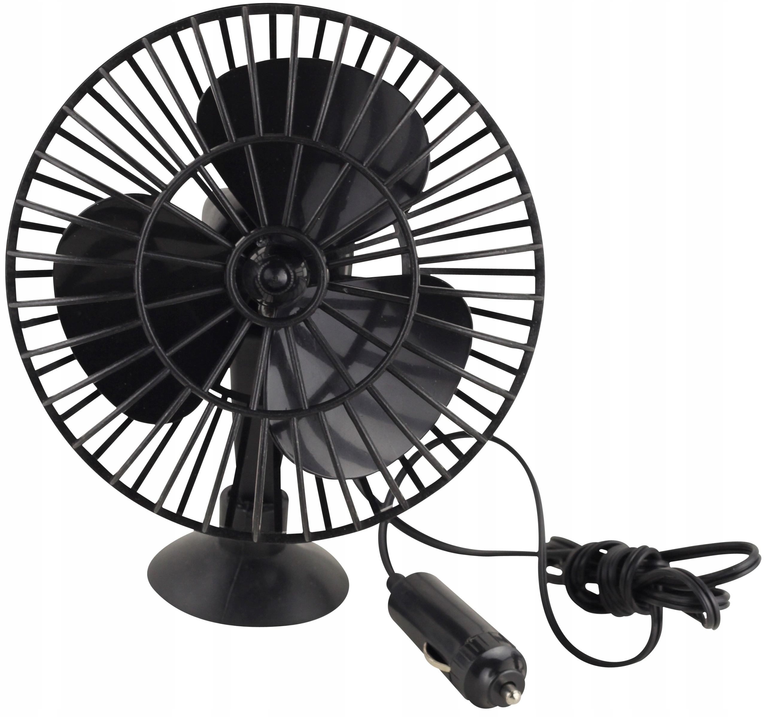 - Автомобильный вентилятор работает от розетки прикуривателя (12 В).