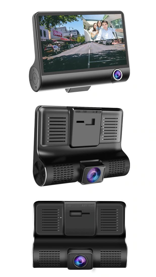 Универсальная автомобильная камера 3-в-1 (передняя камера, камера заднего вида и внутренняя камера) идеально подойдет каждому водителю, который ценит безопасность. Регистратор может предотвратить непреднамеренное столкновение, кражу или использоваться для создания доказательств чьего-либо правонарушения. Видеорегистратор имеет ряд функций, позволяющих комфортно использовать его каждый день. Встроенный аккумулятор позволит продолжить запись, даже если зарядное устройство отключено. 4-дюймовый ЖК-экран позволяет отслеживать записанное изображение в режиме реального времени.
