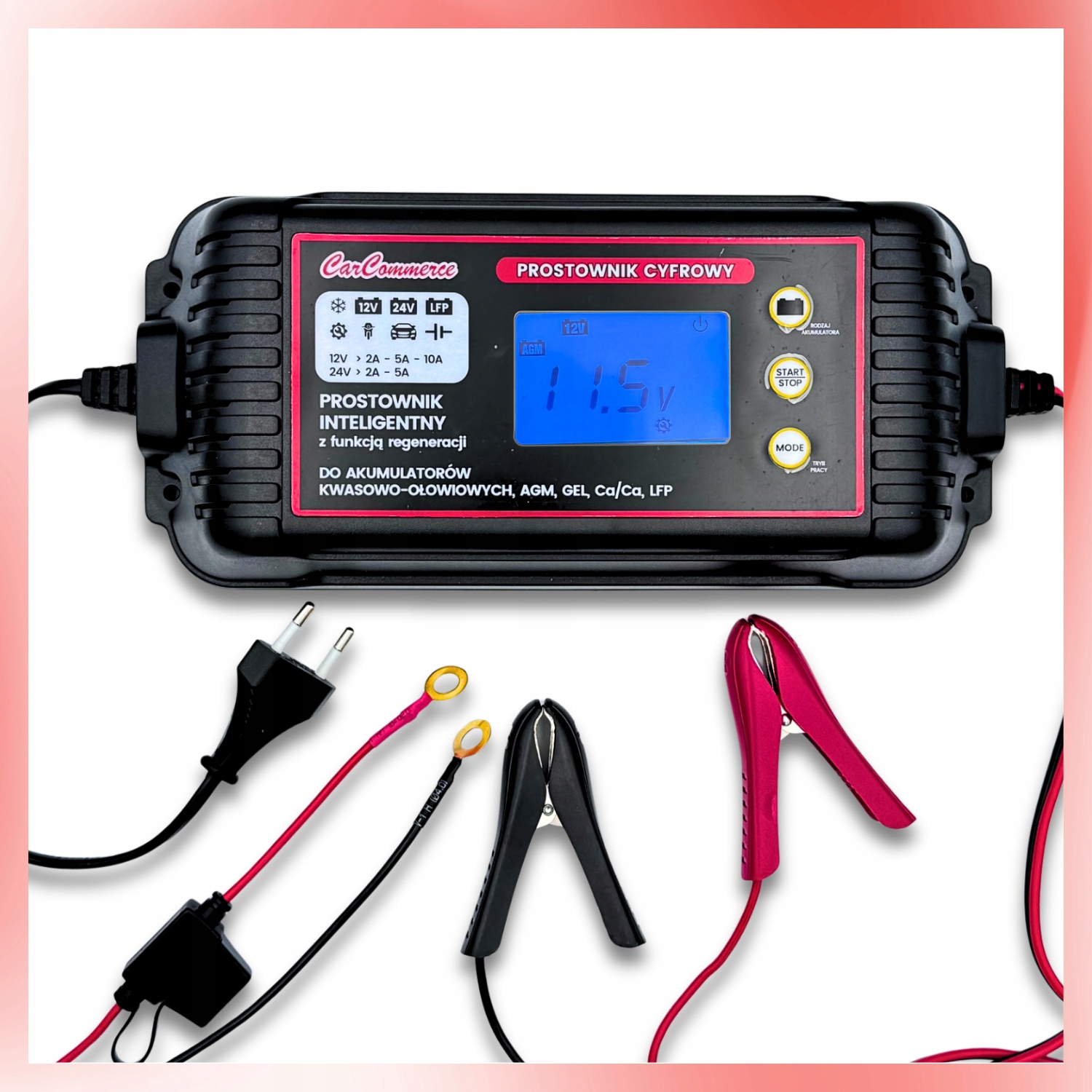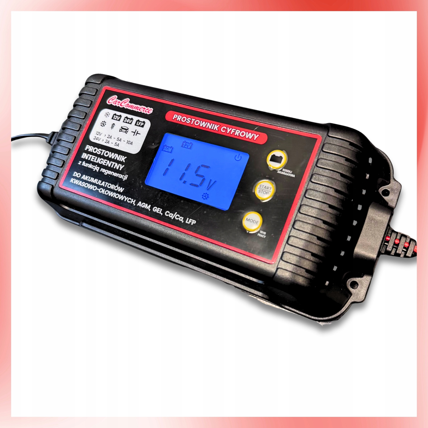 Автомобильное зарядное устройство предназначено для зарядки аккумуляторов напряжением 12 В (до 10 А) и 24 В (до 5 А). Он будет хорошо работать как в легковых автомобилях, так и в грузовых фургонах и фургонах. Благодаря широкому диапазону поддерживаемых аккумуляторов (2–300 Ач) это универсальное и практичное устройство для повседневного использования.