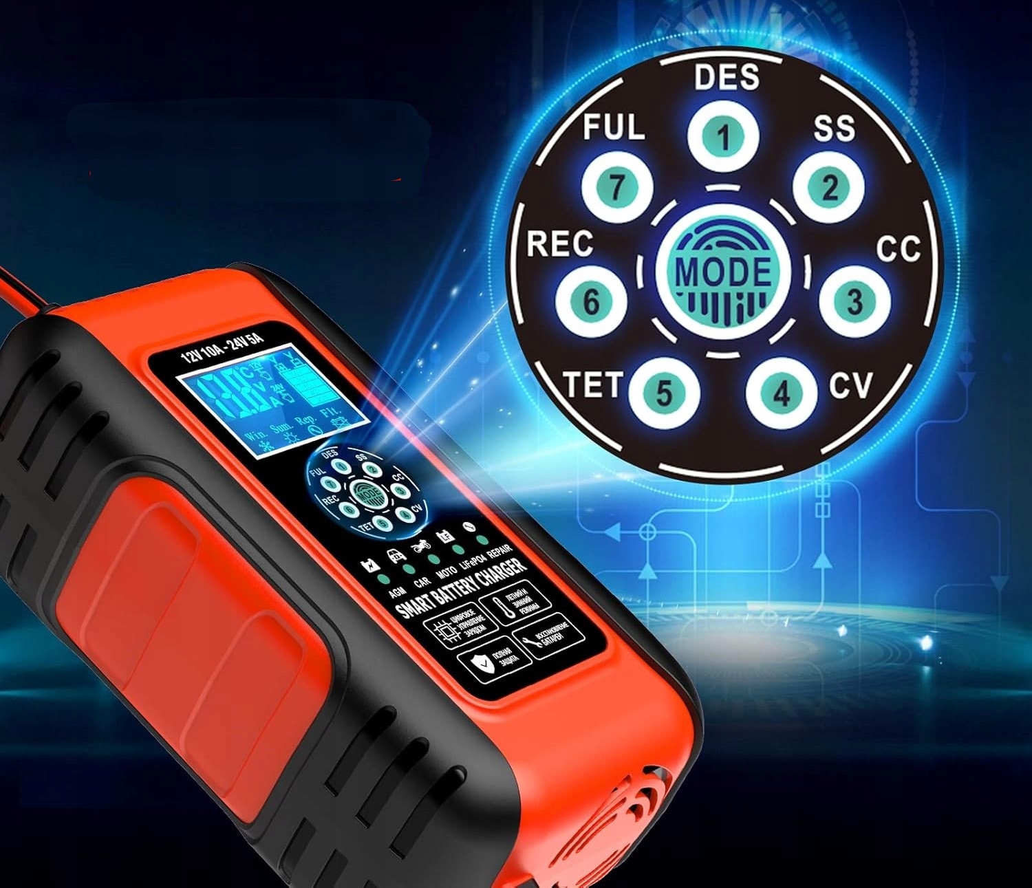 Зарядное устройство для свинцово-кислотных аккумуляторов для автомобилей 12/24 В – современное устройство, совмещающее в себе функции зарядки, обслуживания и десульфатации аккумуляторов. Благодаря возможности работы с аккумуляторами емкостью от 6 до 180 Ач, он идеально подходит для различных транспортных средств, таких как легковые автомобили, кемперы, мотоциклы, лодки, а также сельскохозяйственная и спортивная техника. Созданное для эффективной и быстрой зарядки, оно совместимо с залитыми, гелевыми, AGM и LiFePO4 аккумуляторами.