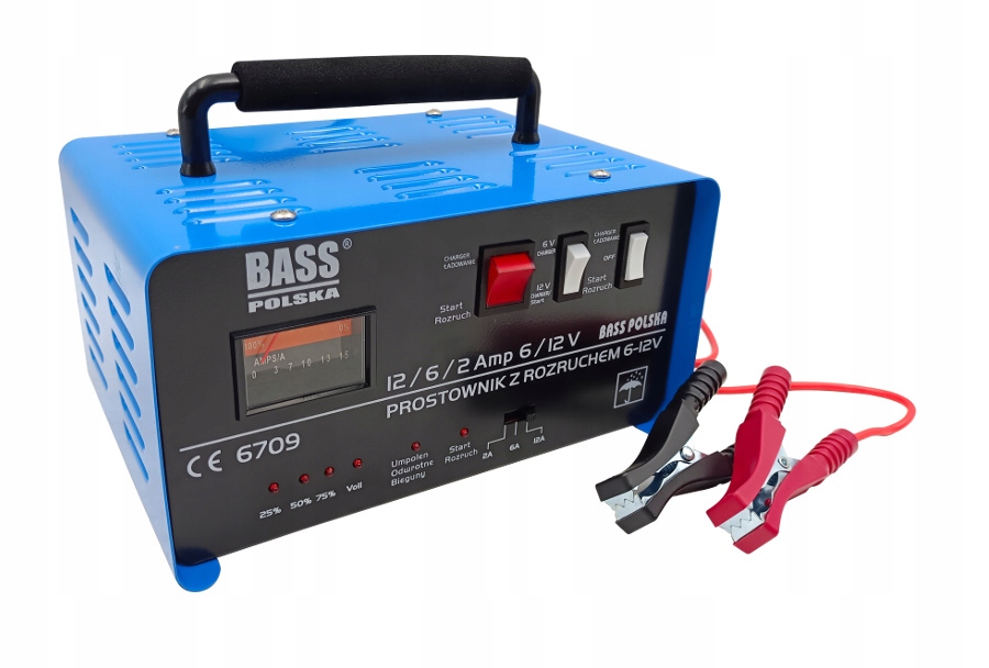 Зарядное устройство Bass Polska позволяет заряжать аккумуляторы 6 В и 12 В и запускать их мгновенно.