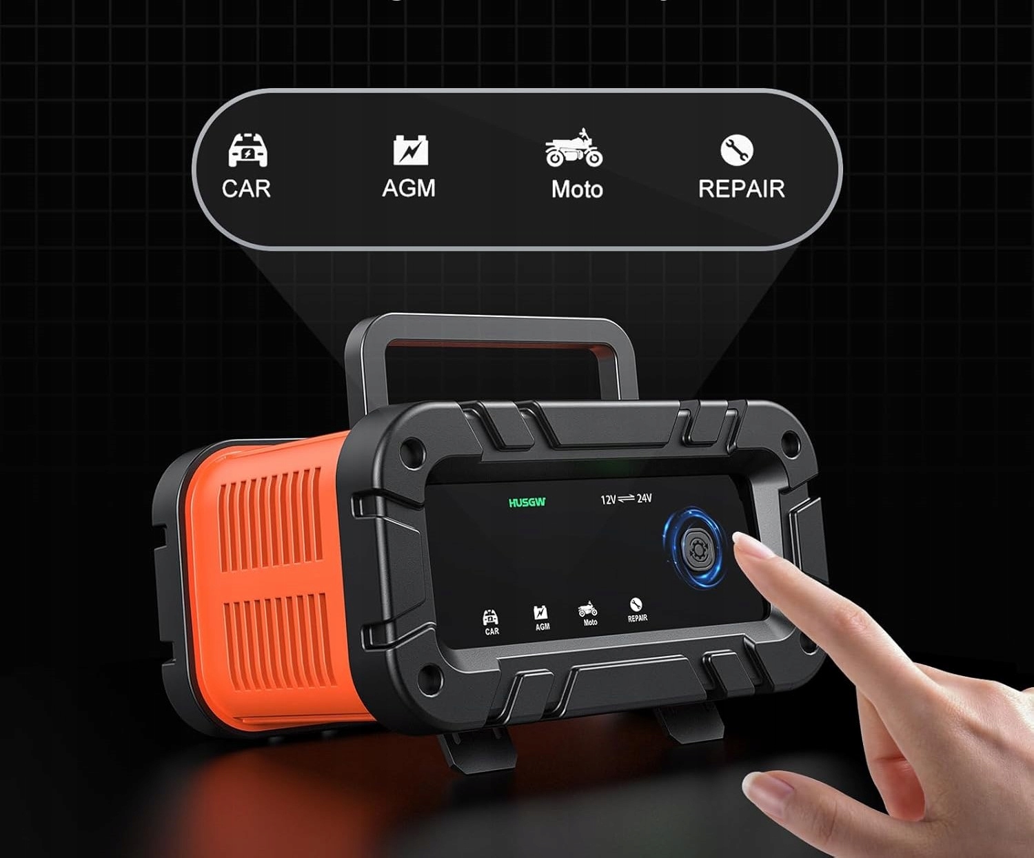 Зарядное устройство для лития Husgw 12/24 В, 10 А, интеллектуальное зарядное устройство с функцией автоматического ремонта и ЖК-дисплеем, зарядное устройство для автомобилей, мотоциклов, грузовиков, AGM, GEL, SLA
