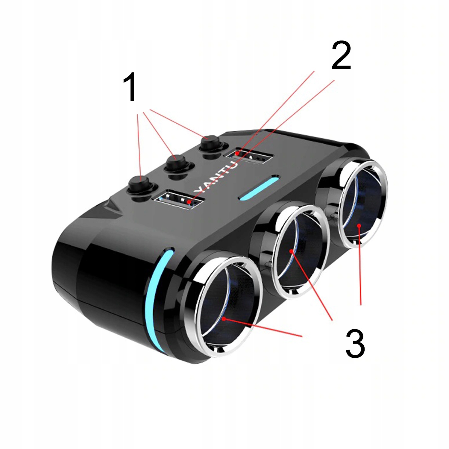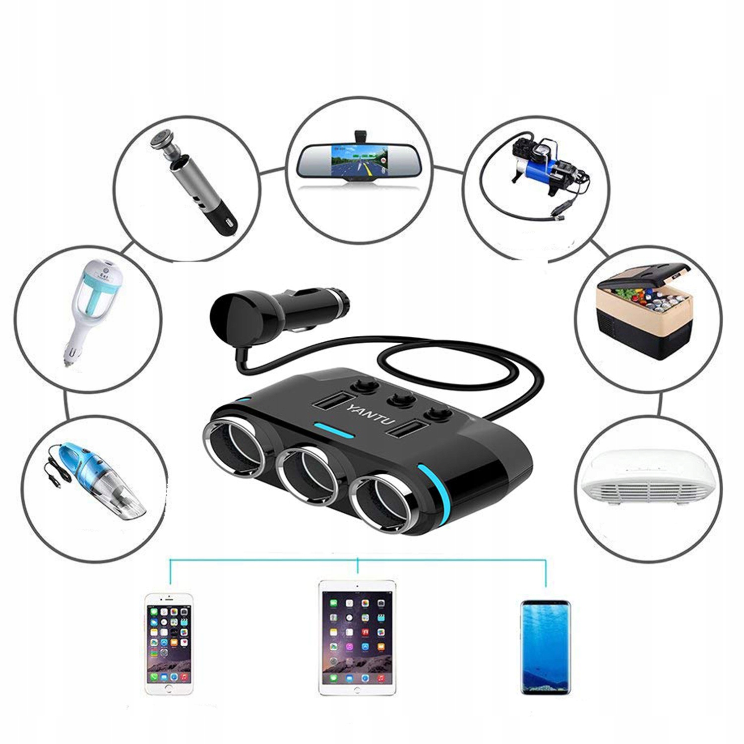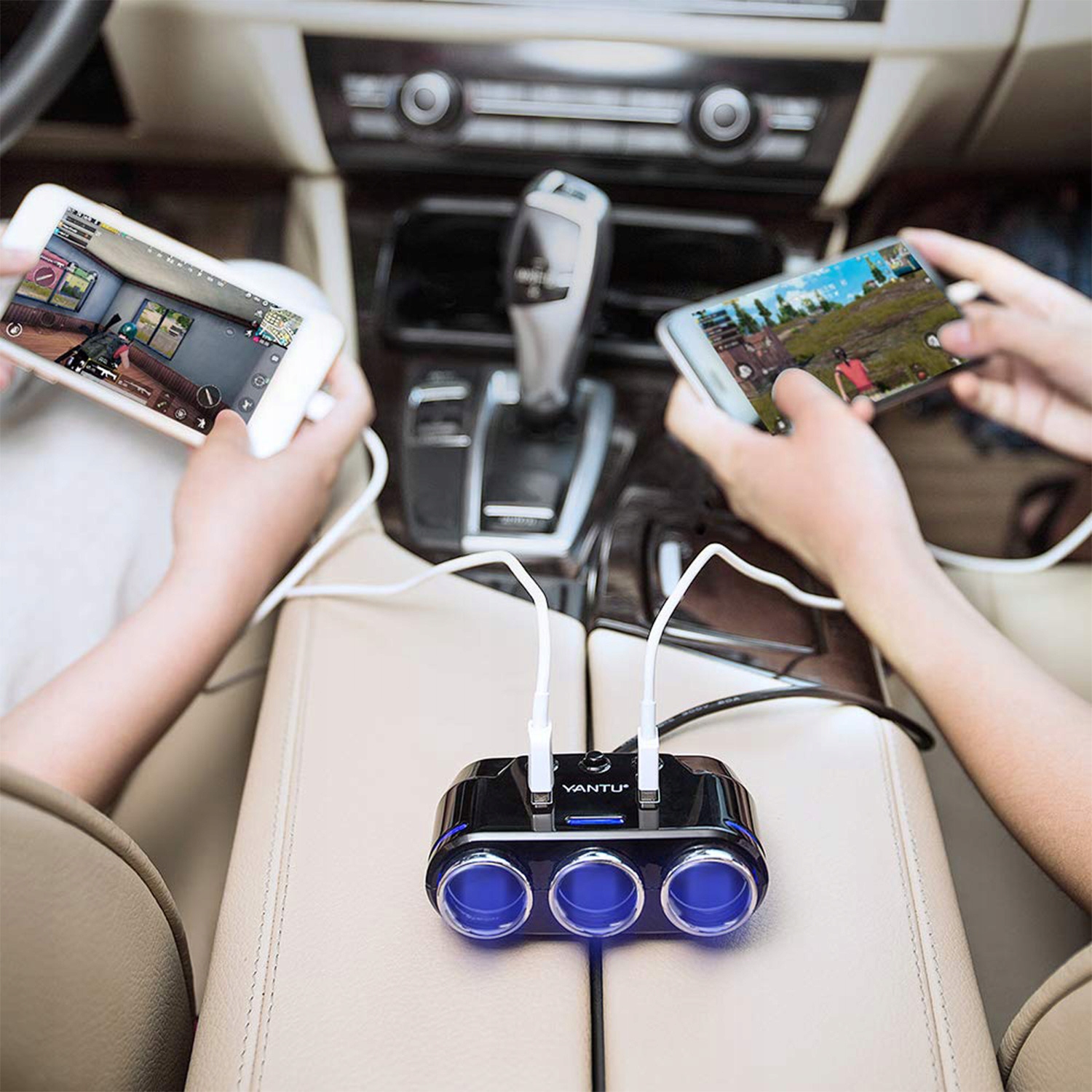 Yantu – очень функциональный разветвитель для гнезда прикуривателя автомобиля. Изделие распределяет их на целых 3 дополнительных порта с максимальной мощностью 100 Вт. Дополнительным преимуществом являются 2 встроенных USB-порта. Благодаря этому несколько устройств могут использовать сплиттер одновременно. Благодаря нашему сплиттеру вы найдете место для подключения путевого регистратора, дорожного холодильника, навигации, телефонов, планшетов, ноутбуков и многого другого.