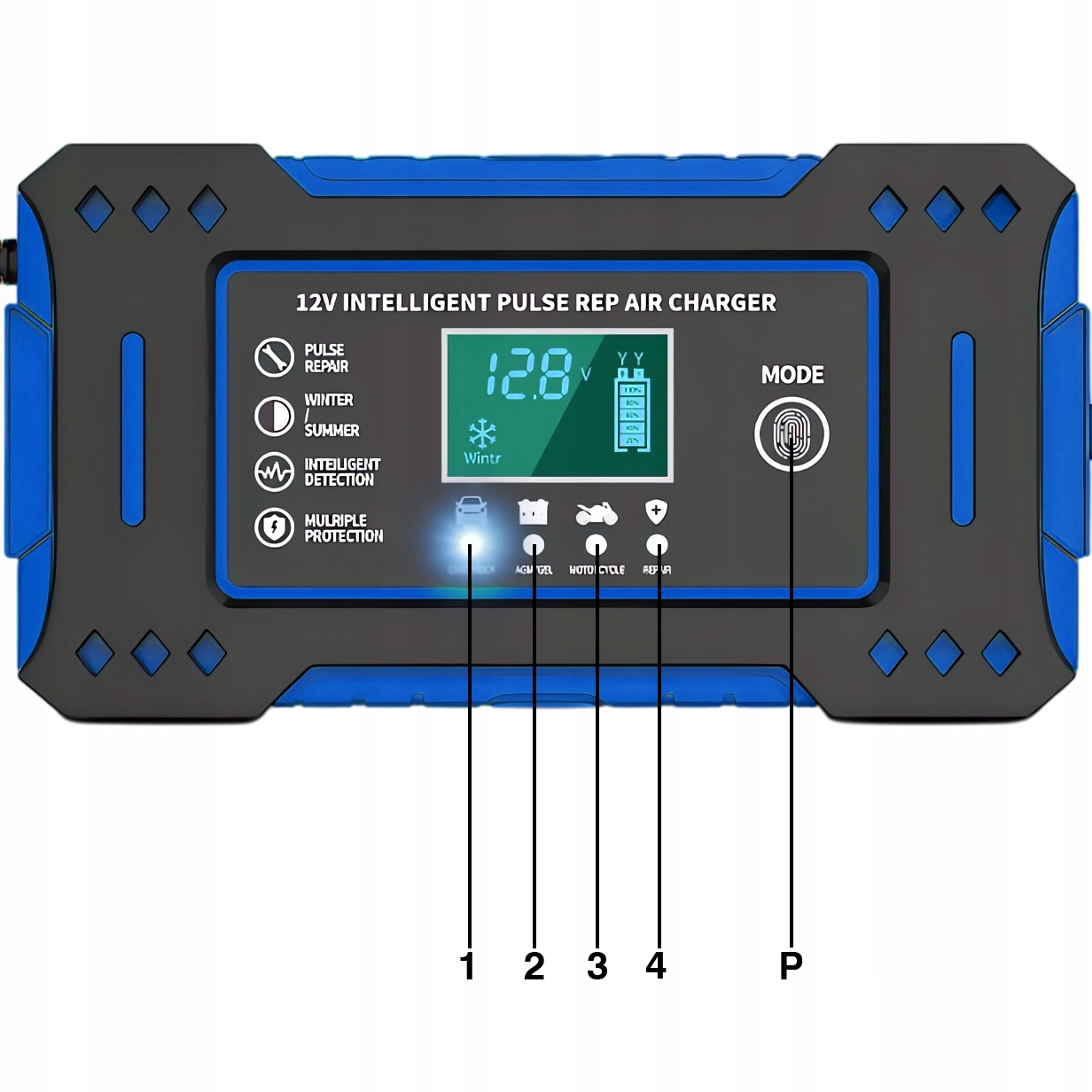 Зарядное устройство оснащено четырьмя функциями, которые легко переключаются одной кнопкой P: