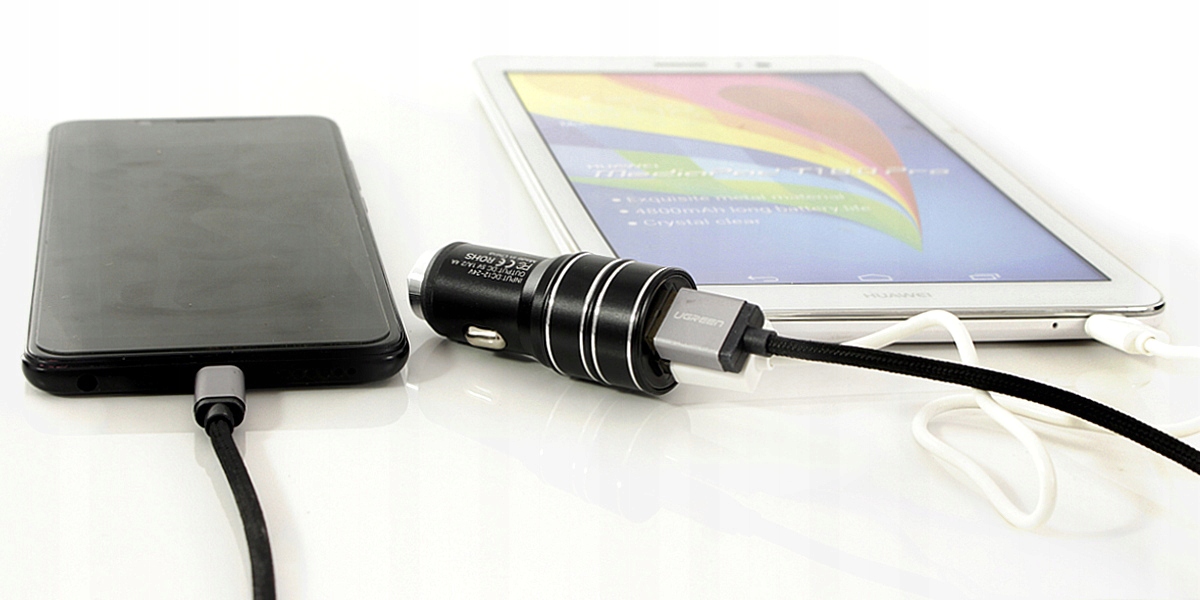 Предмет продажи — автомобильное зарядное устройство для прикуривателя, которое позволит быстро и эффективно заряжать аккумуляторы двух устройств одновременно.