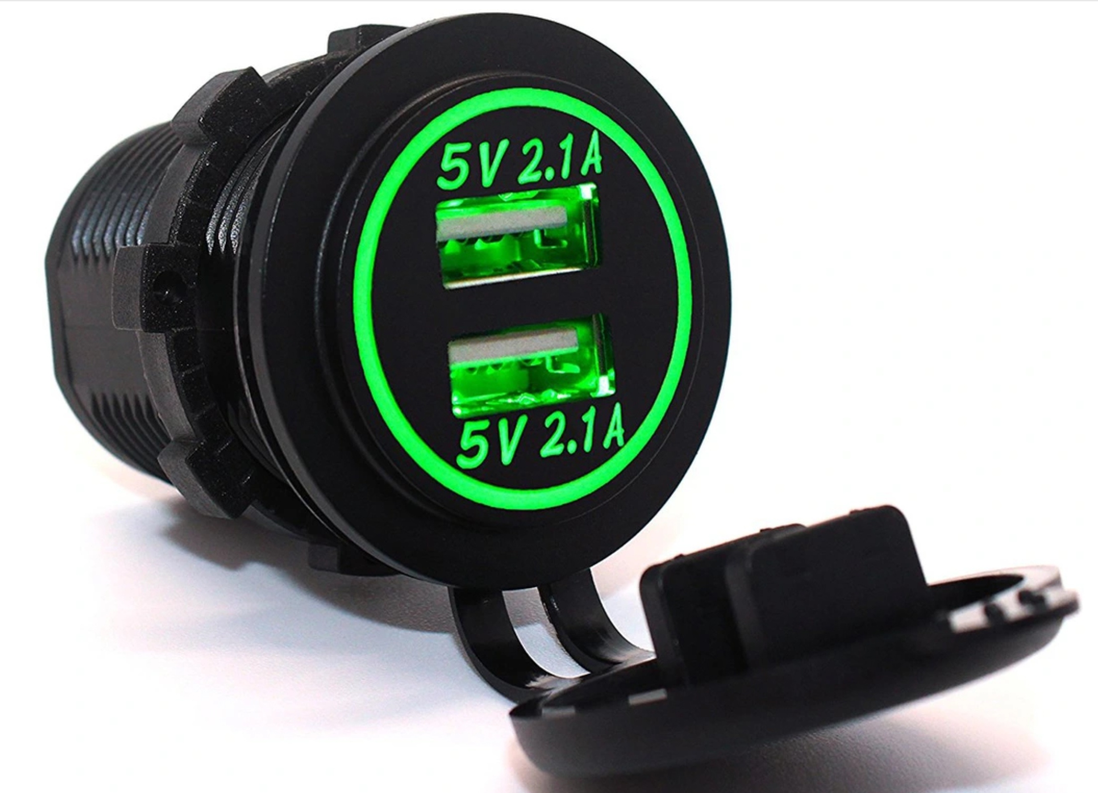 Автомобильное зарядное устройство 2x USB 4.2A панельное гнездо светодиодного зеленого цвета