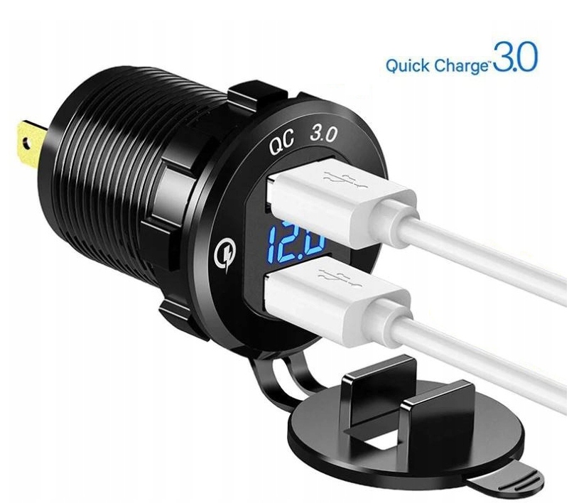 Автомобильное зарядное устройство 2x USB QC 3.0 вольтметр 3A