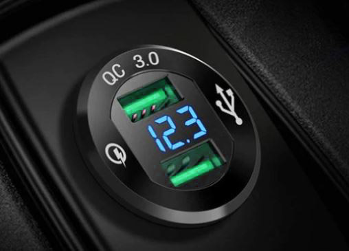 Автомобильное зарядное устройство, 2 порта QC3.0 + ВОЛЬТМЕТР: